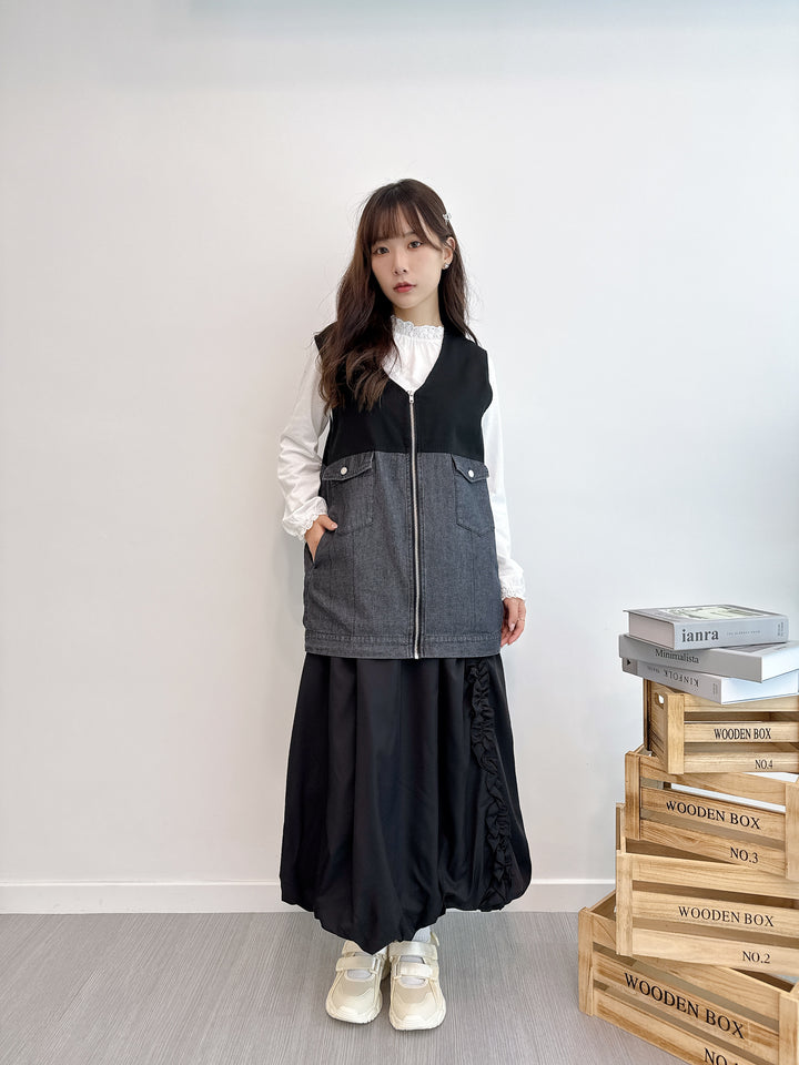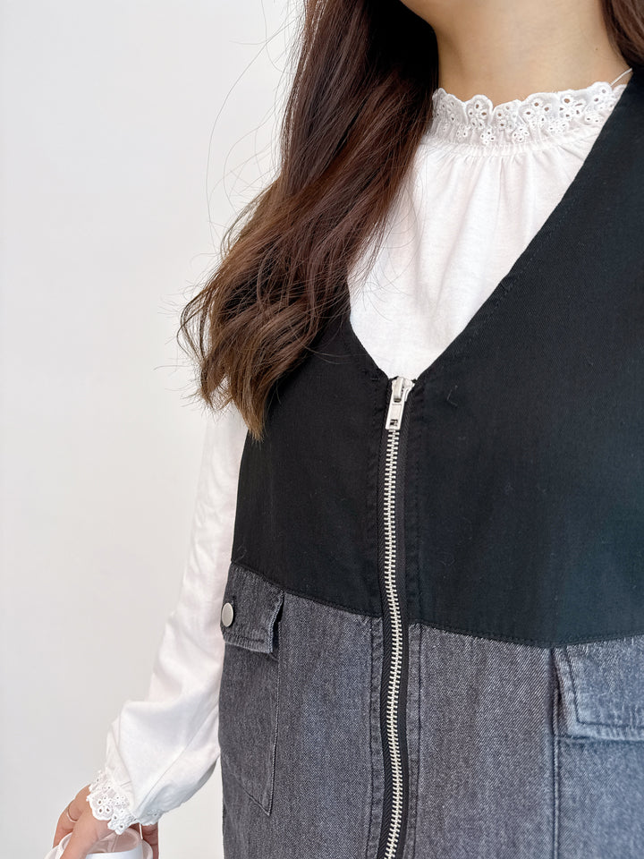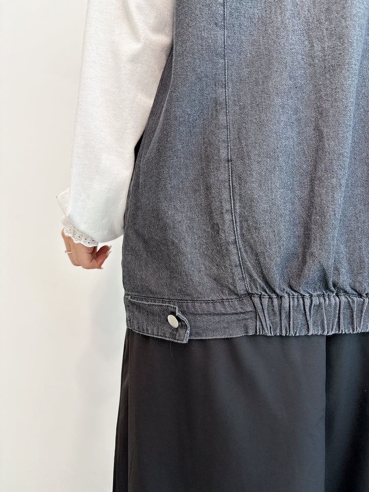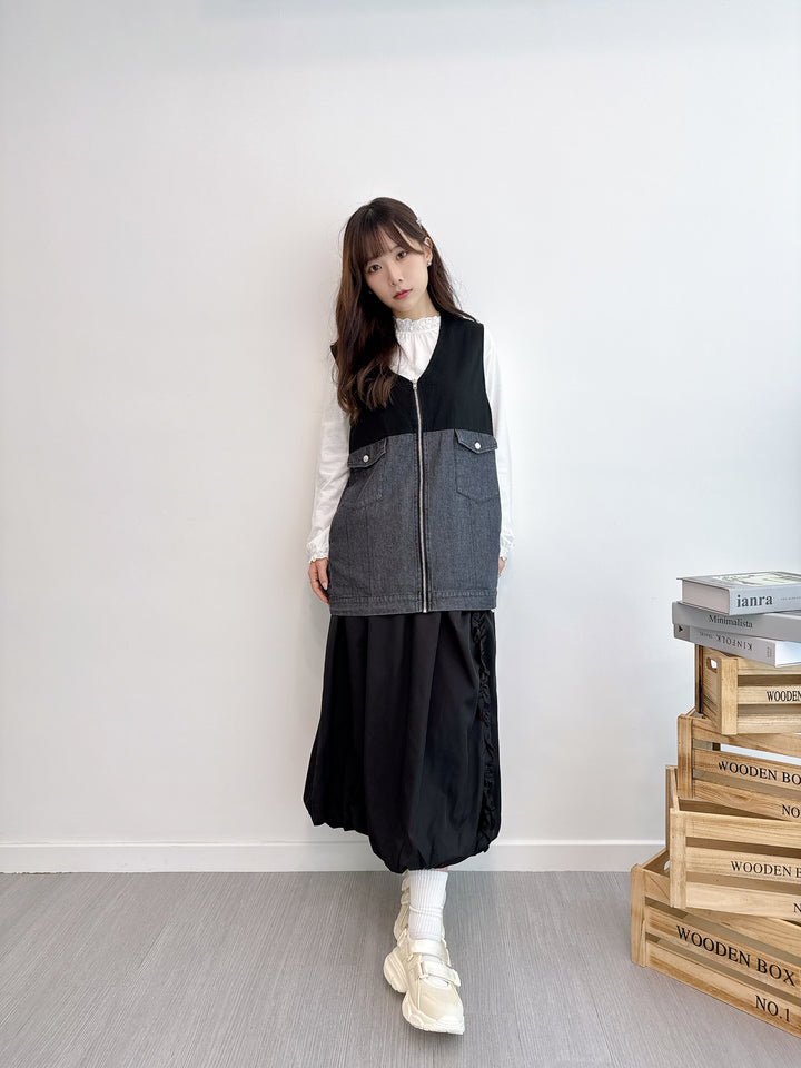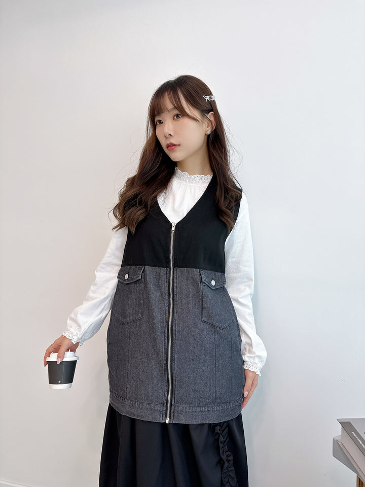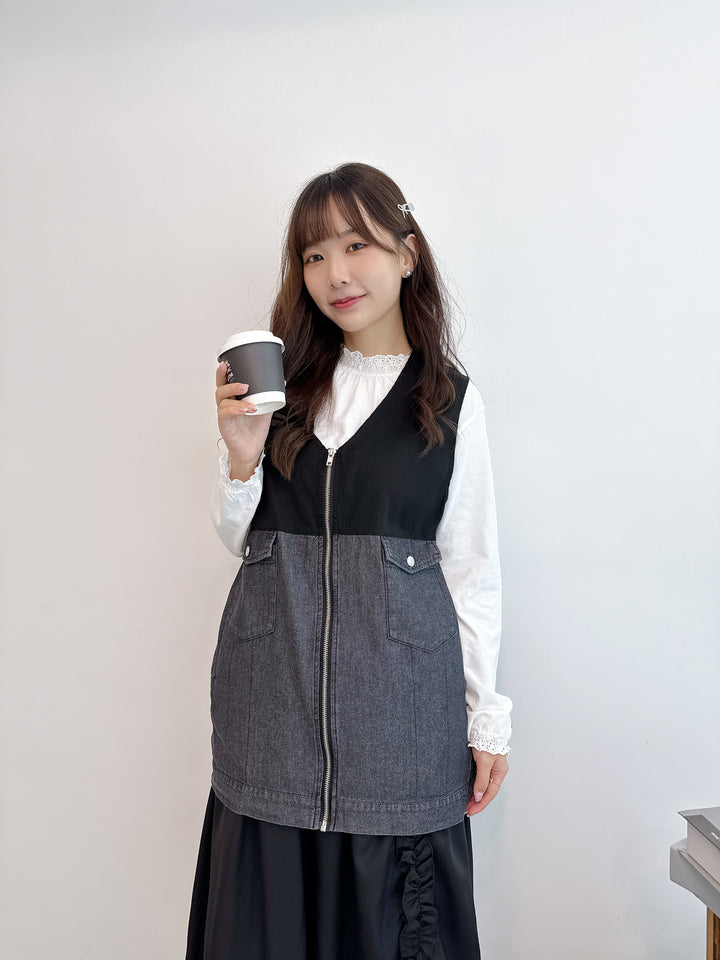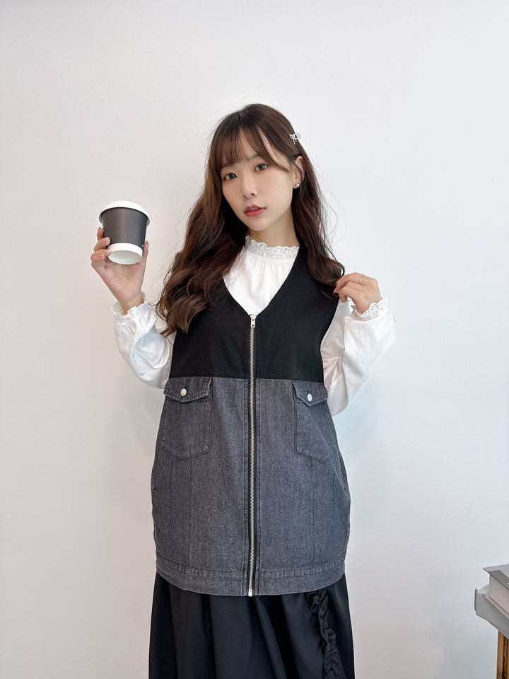 2508146 LUP Patchwork Denim Loose Vest - Black