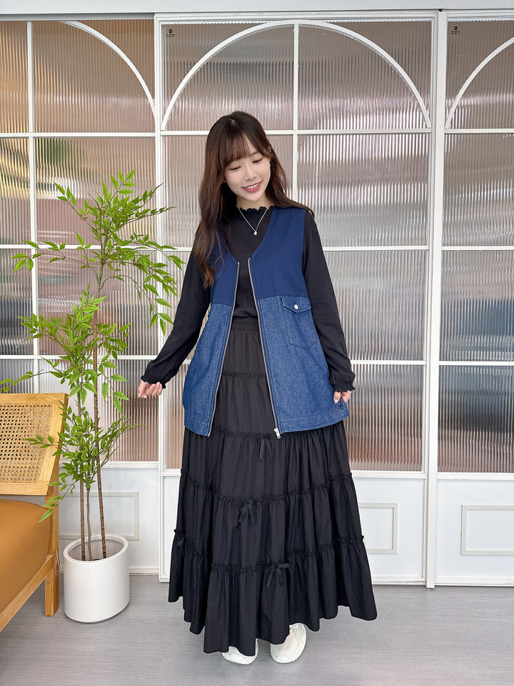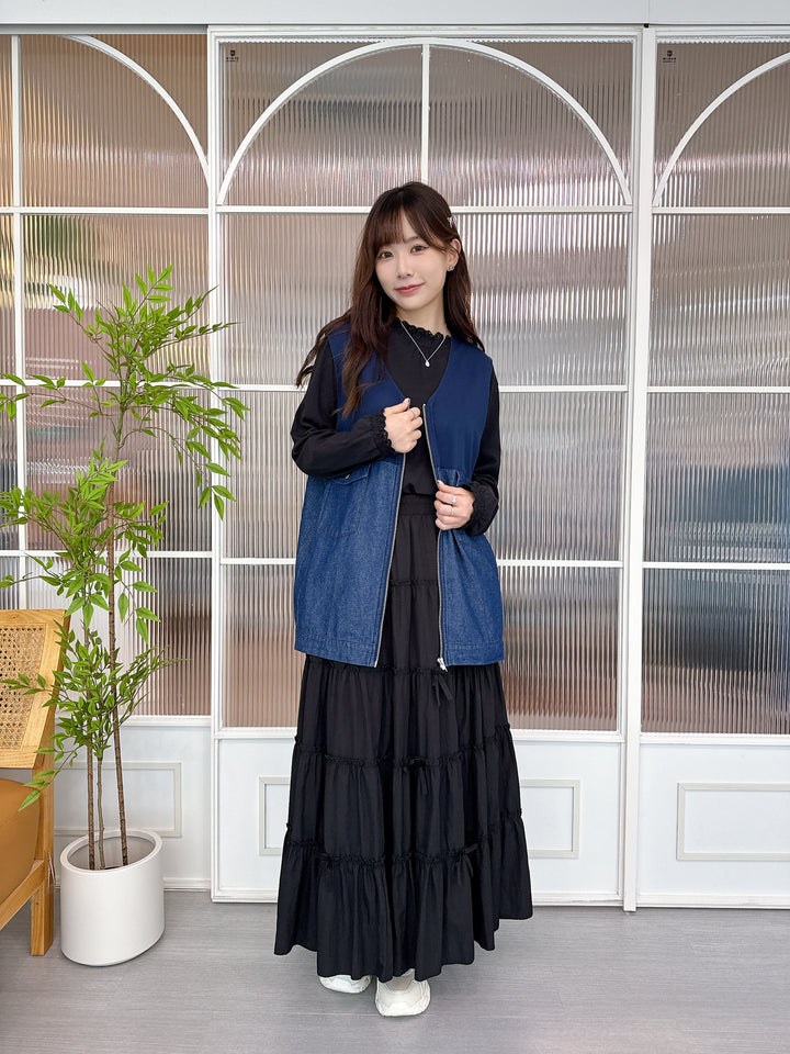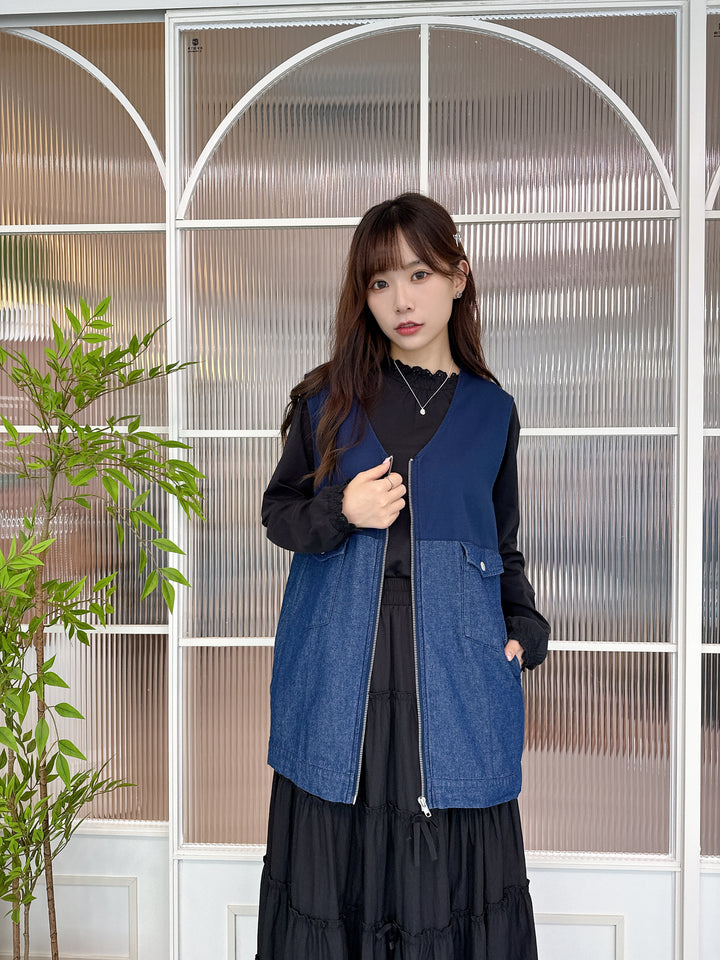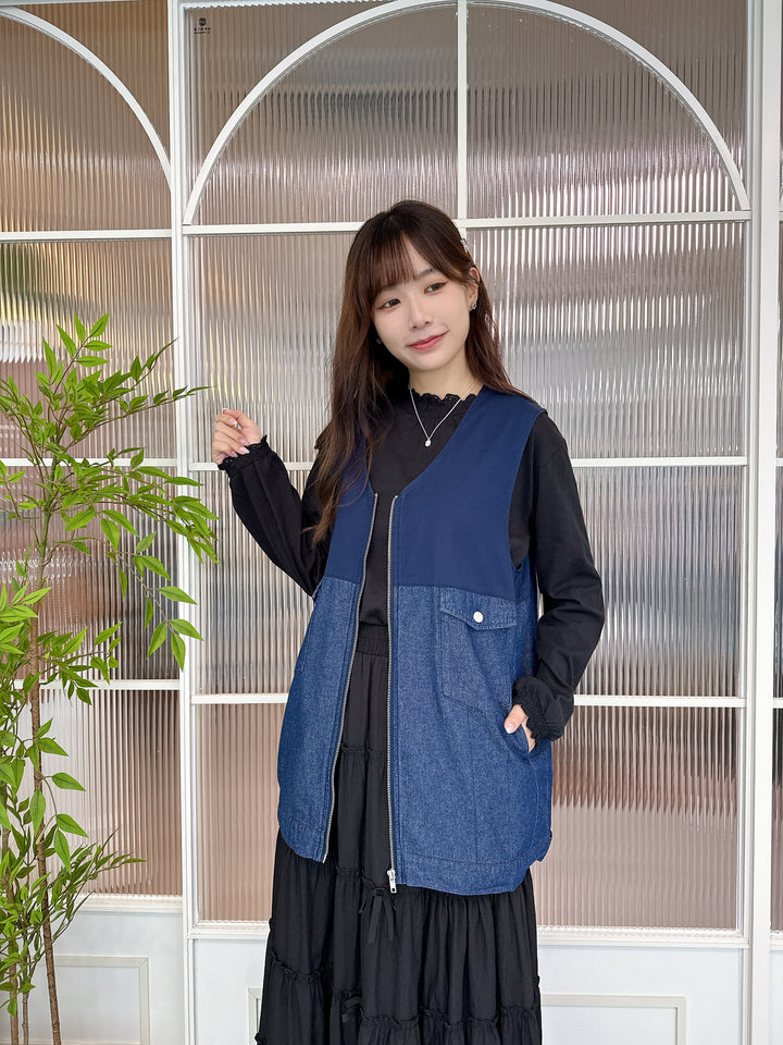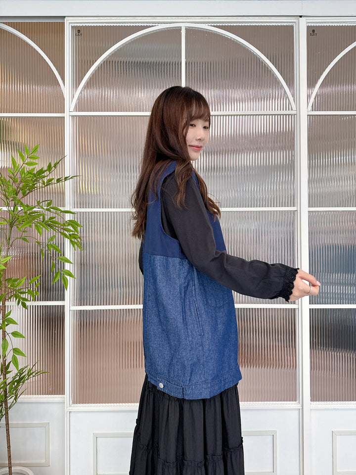 2508146 LUP Patchwork Denim Loose Vest - Navy