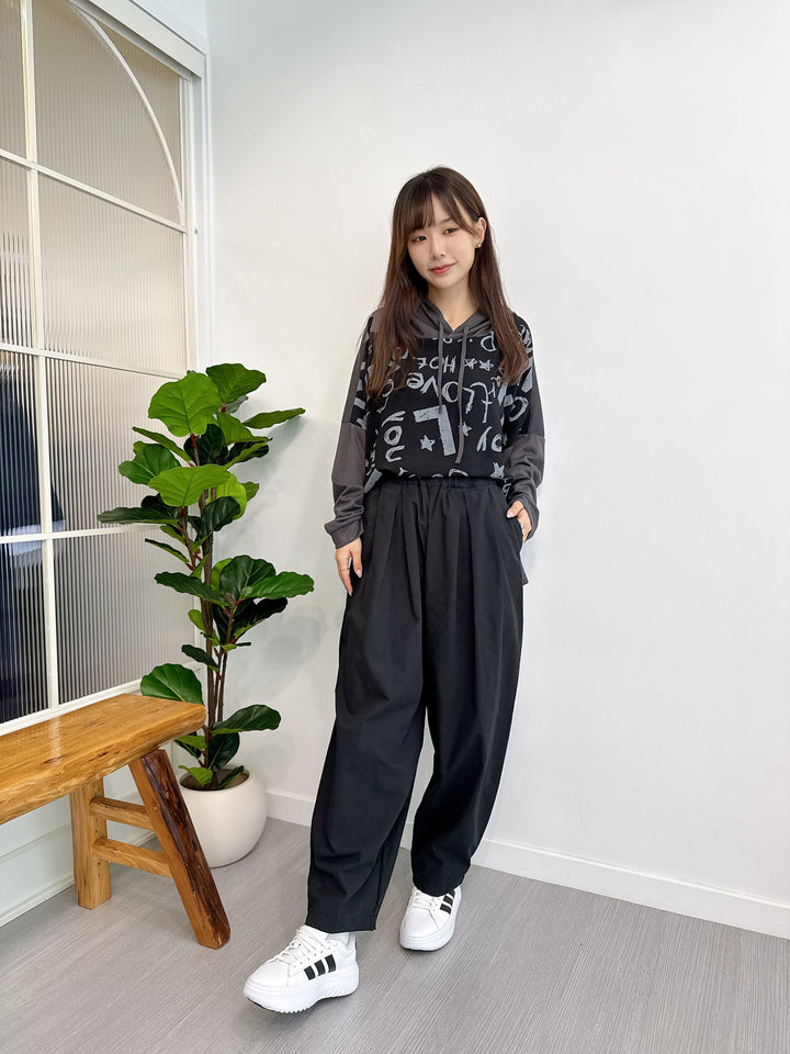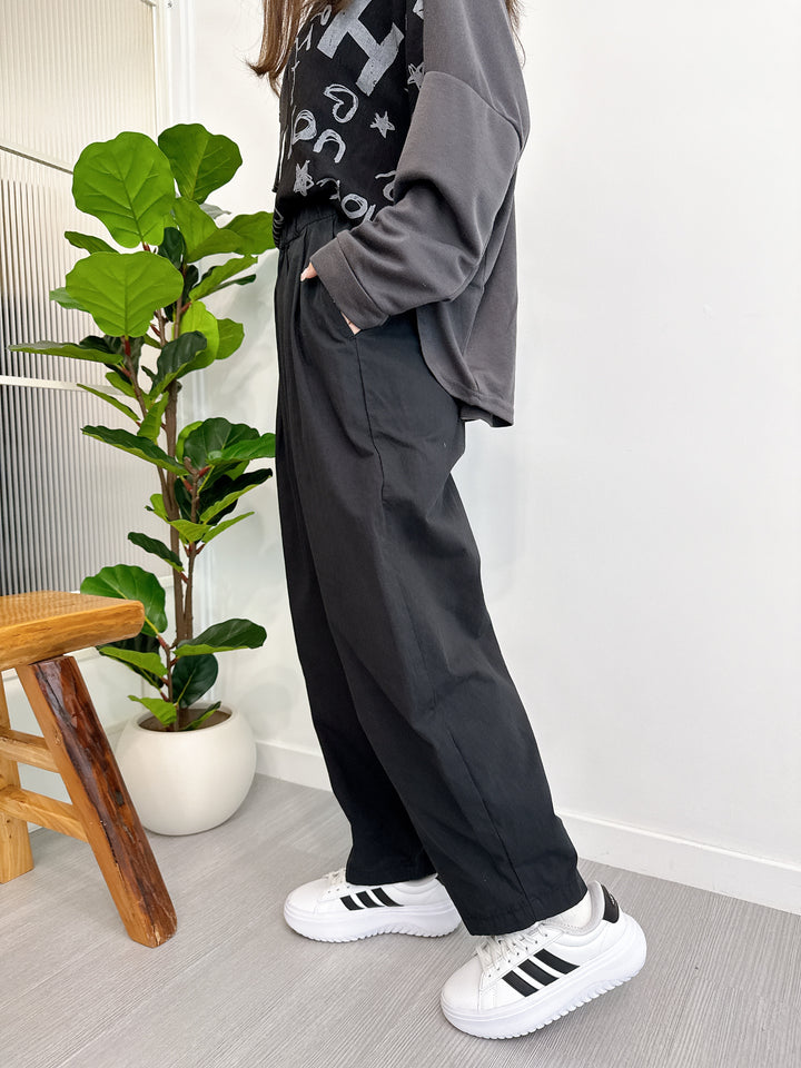 2509032 34 Dump & Denim Tuck Easy Pants - Black