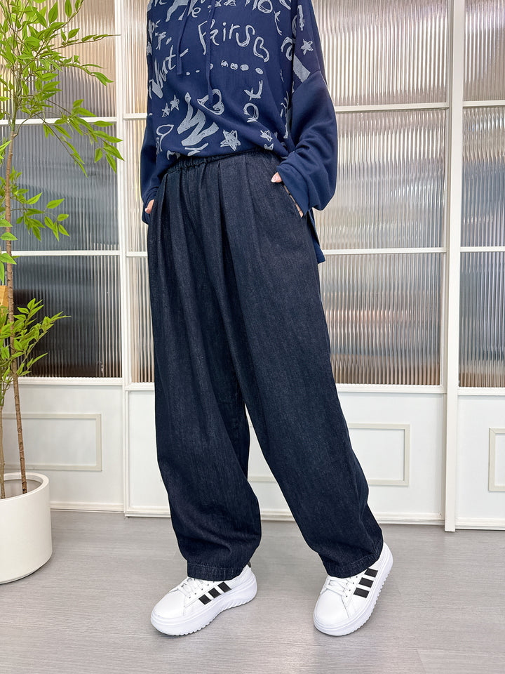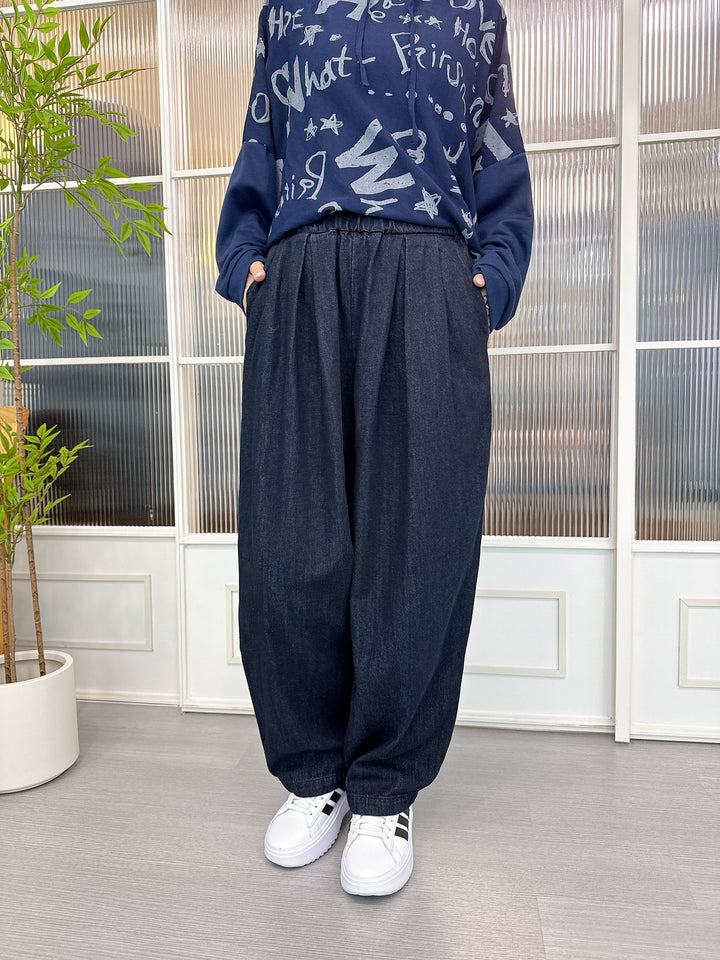 2509032 34 Dump & Denim Tuck Easy Pants - Navy