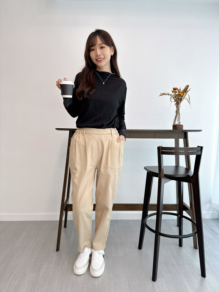 (已滿額,只限已於直播留貨客人下單) 2509058 MMO Mixed Material Bottle Neck Top - Black