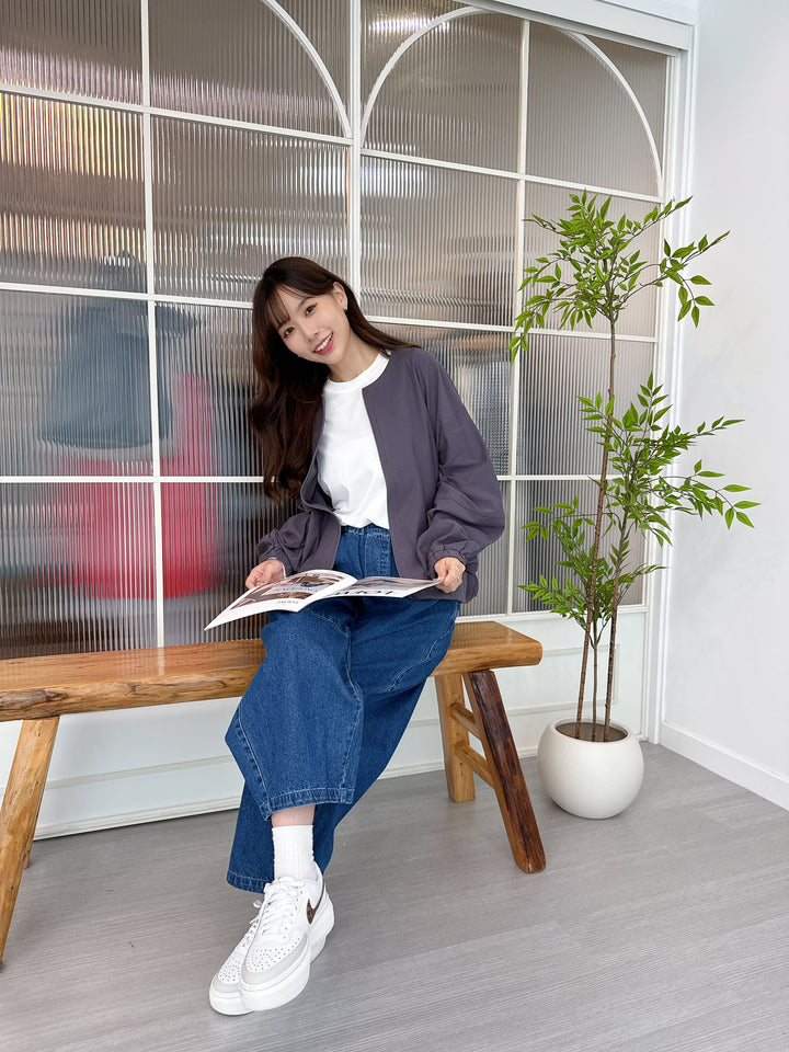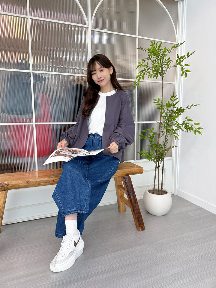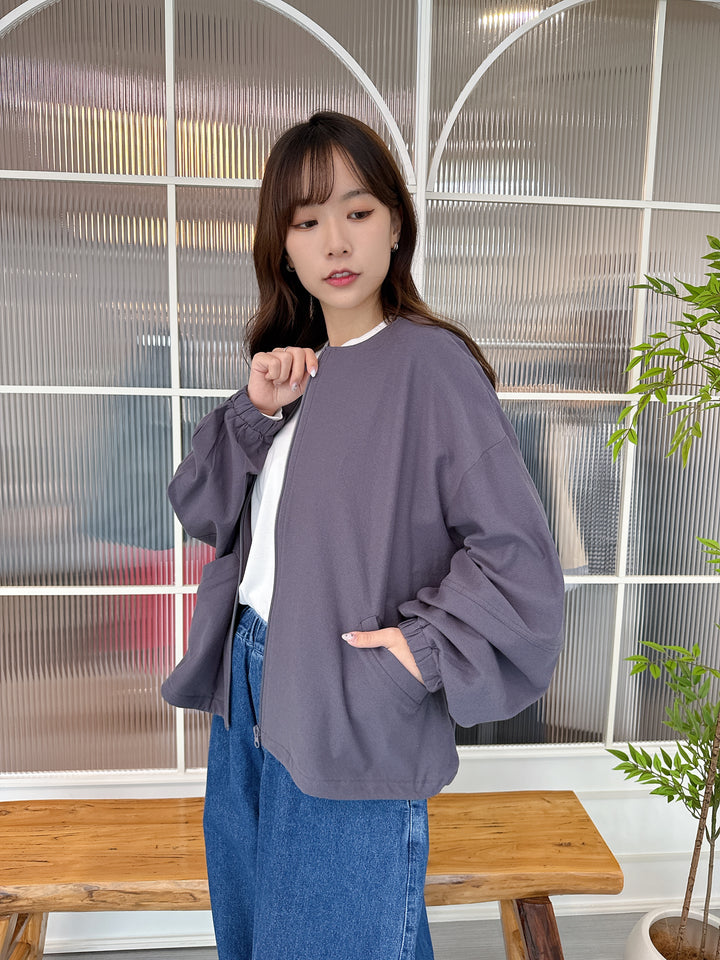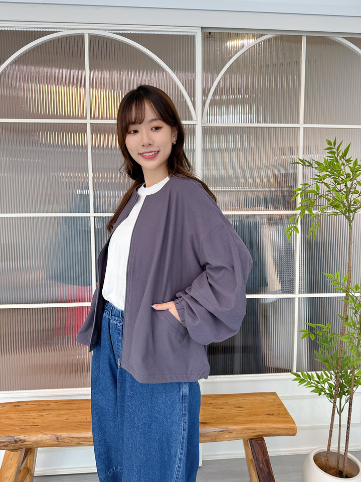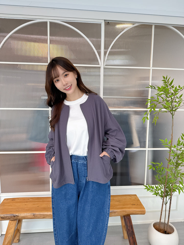 2509059 MMO UV Cut Crew Neck Zip Cardigan - Charcoal