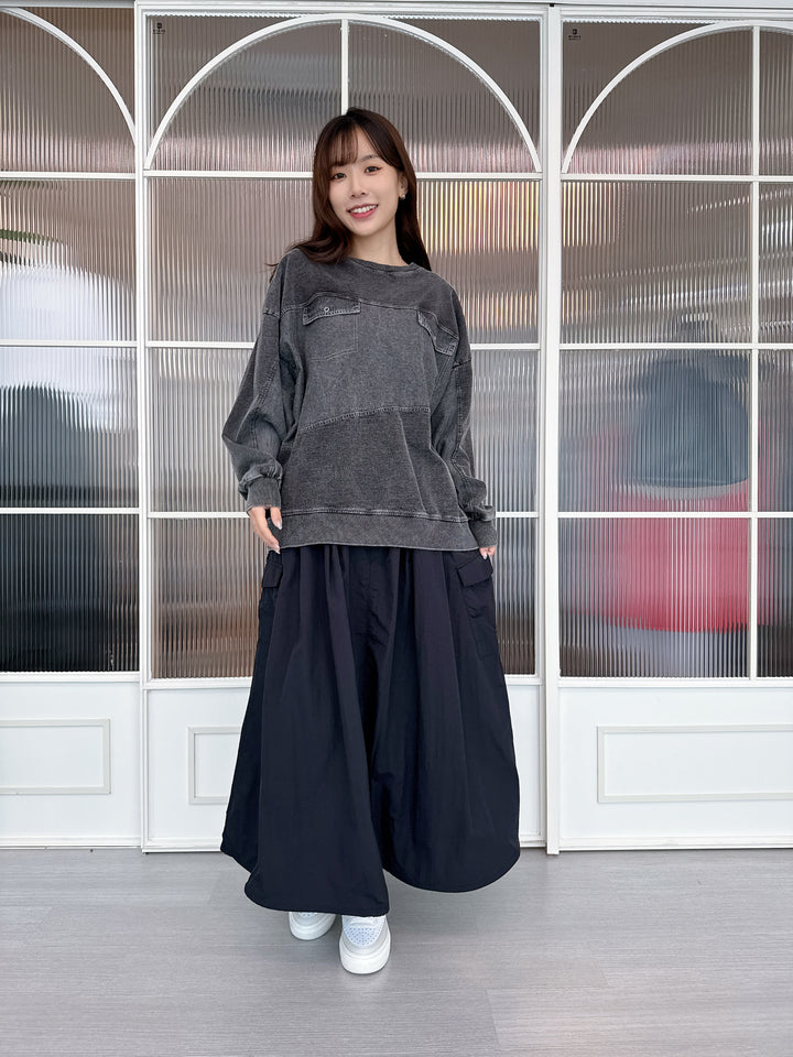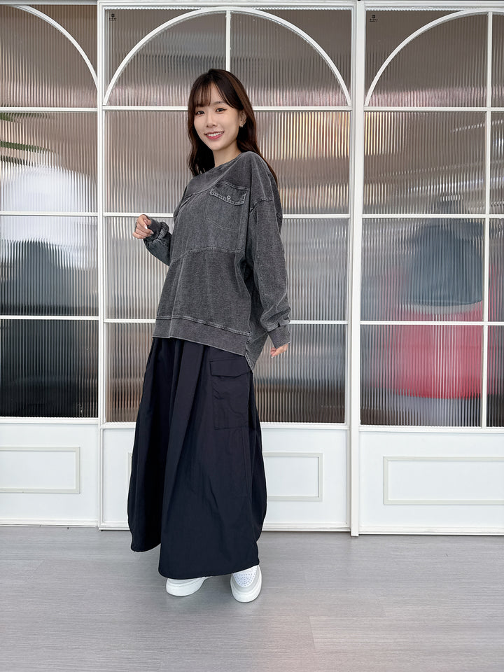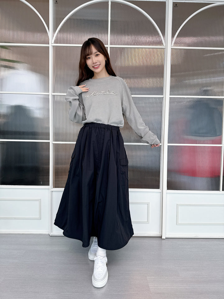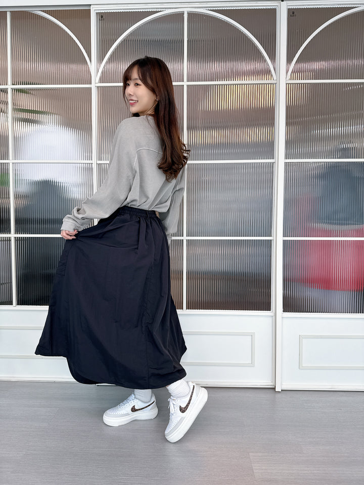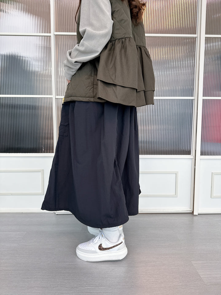 2509060 MMO Water Repellent Drawstring Hem Skirt - Black