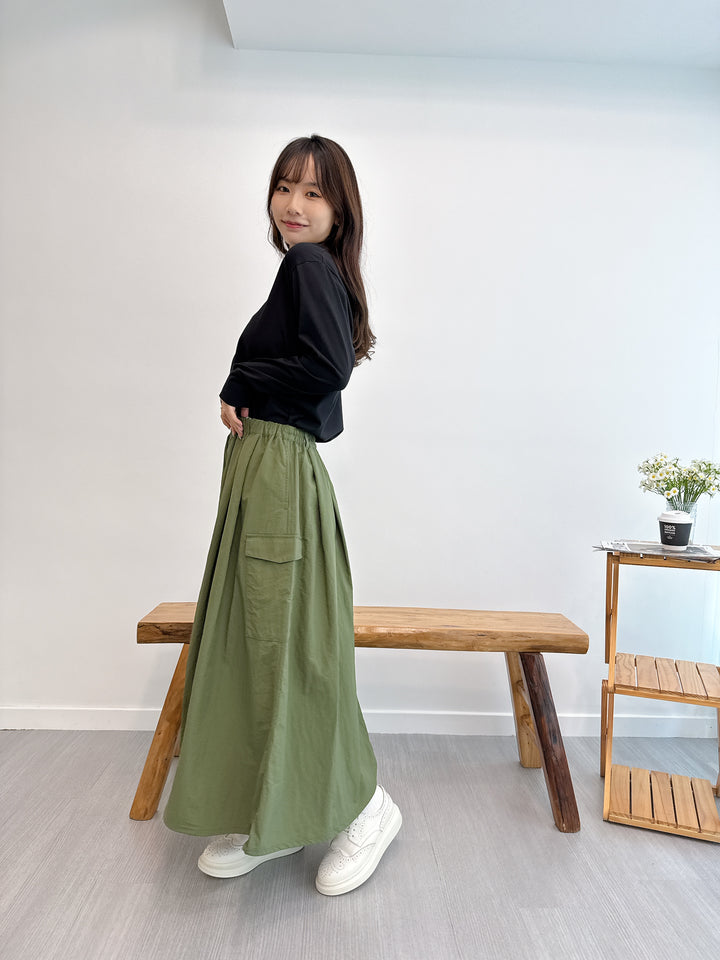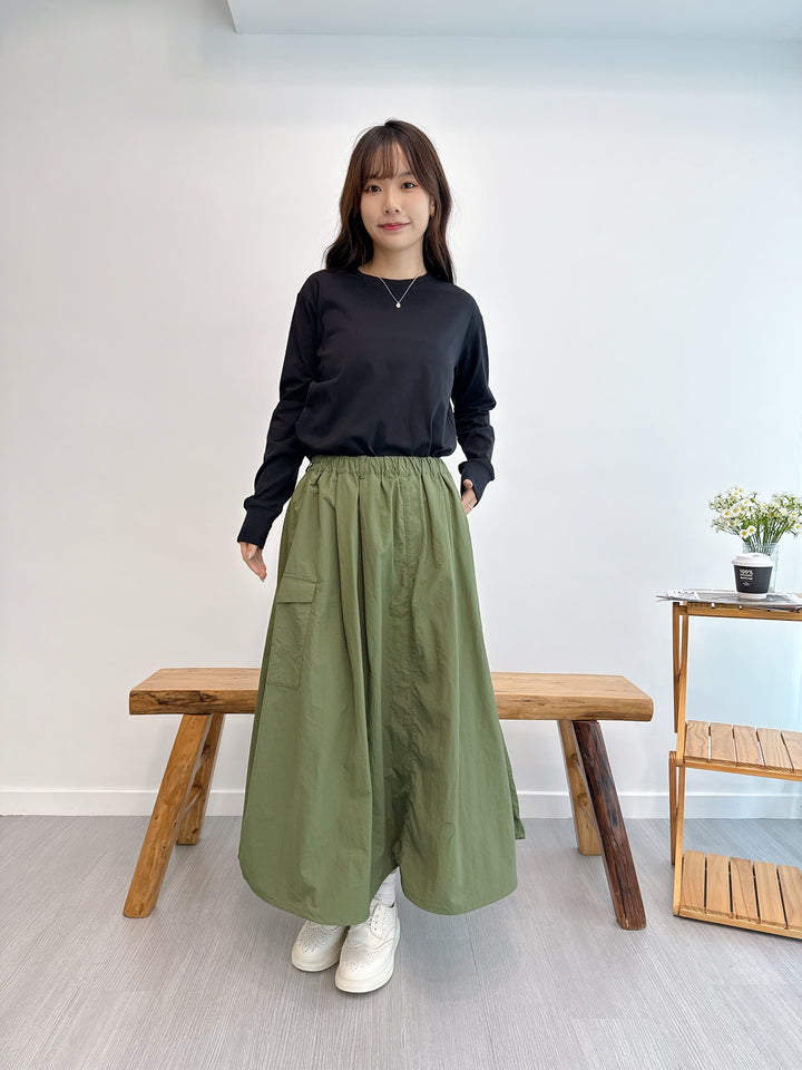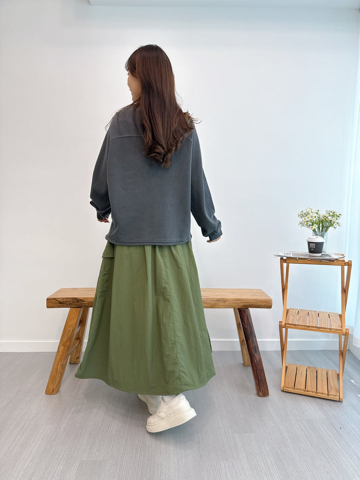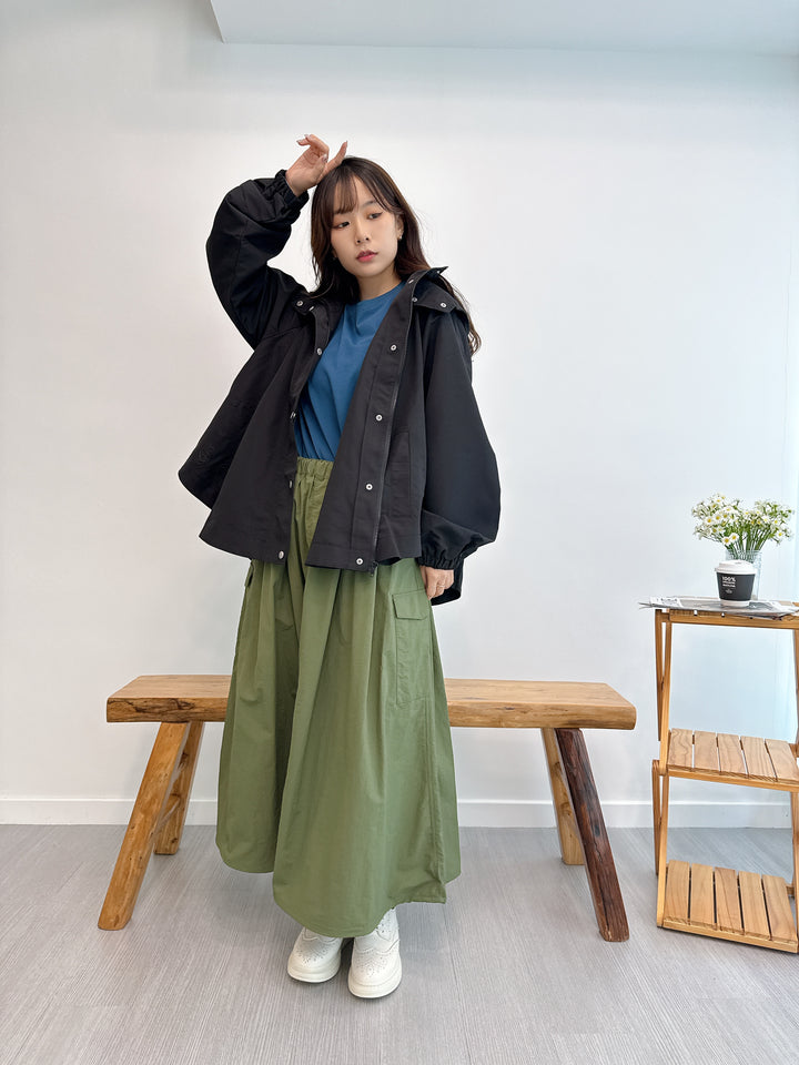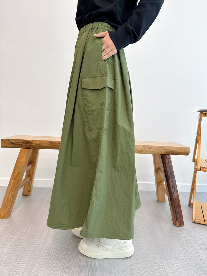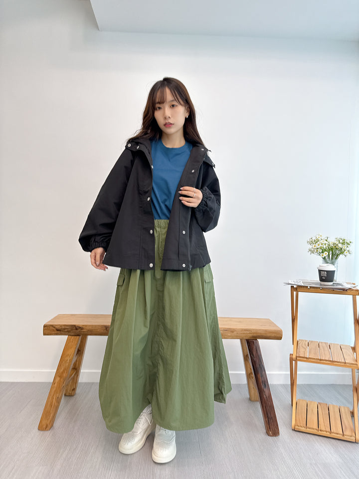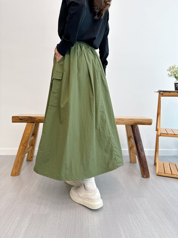 2509060 MMO Water Repellent Drawstring Hem Skirt - Khaki