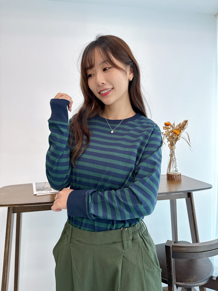 2509063 MMO Bi-Colour Border Ribbed Top - Green