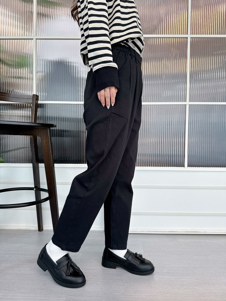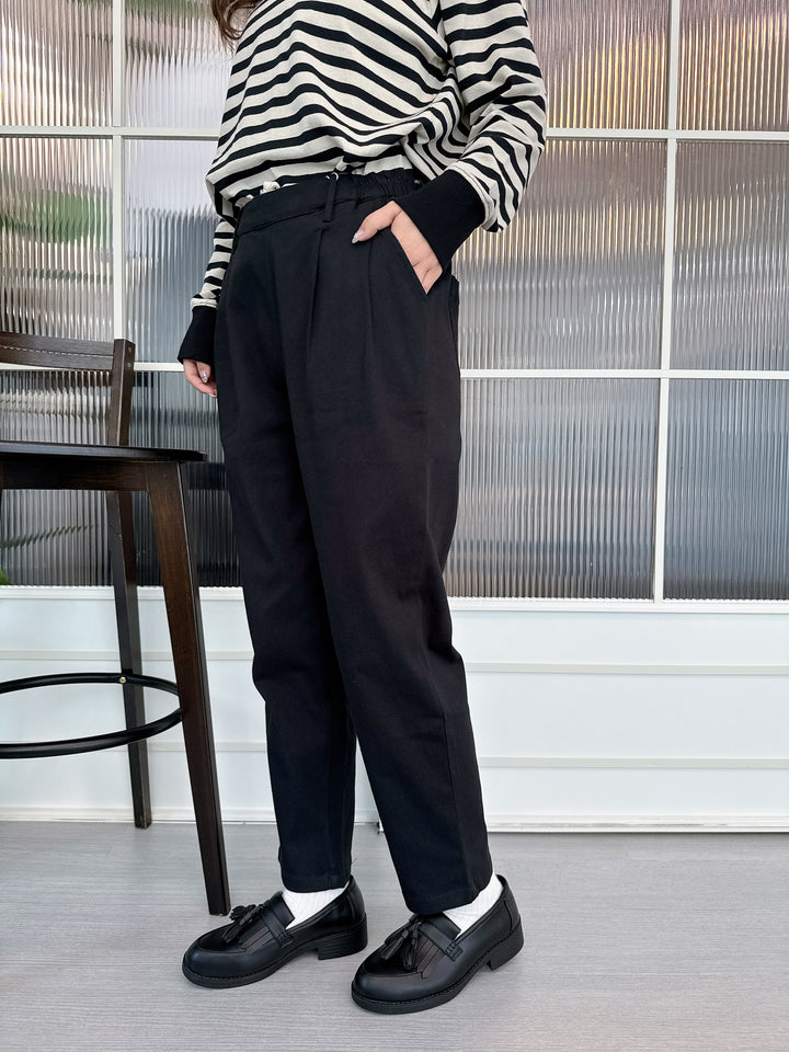 2509065 MMO Stretch Fabric Tuck Pants - Black