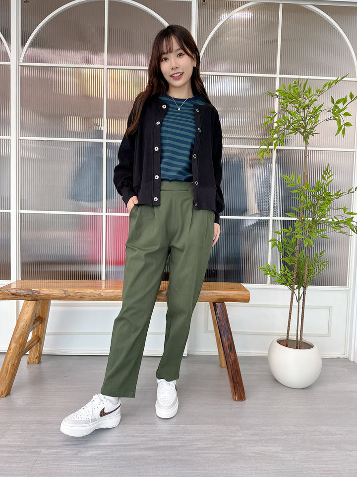 2509065 MMO Stretch Fabric Tuck Pants - Khaki