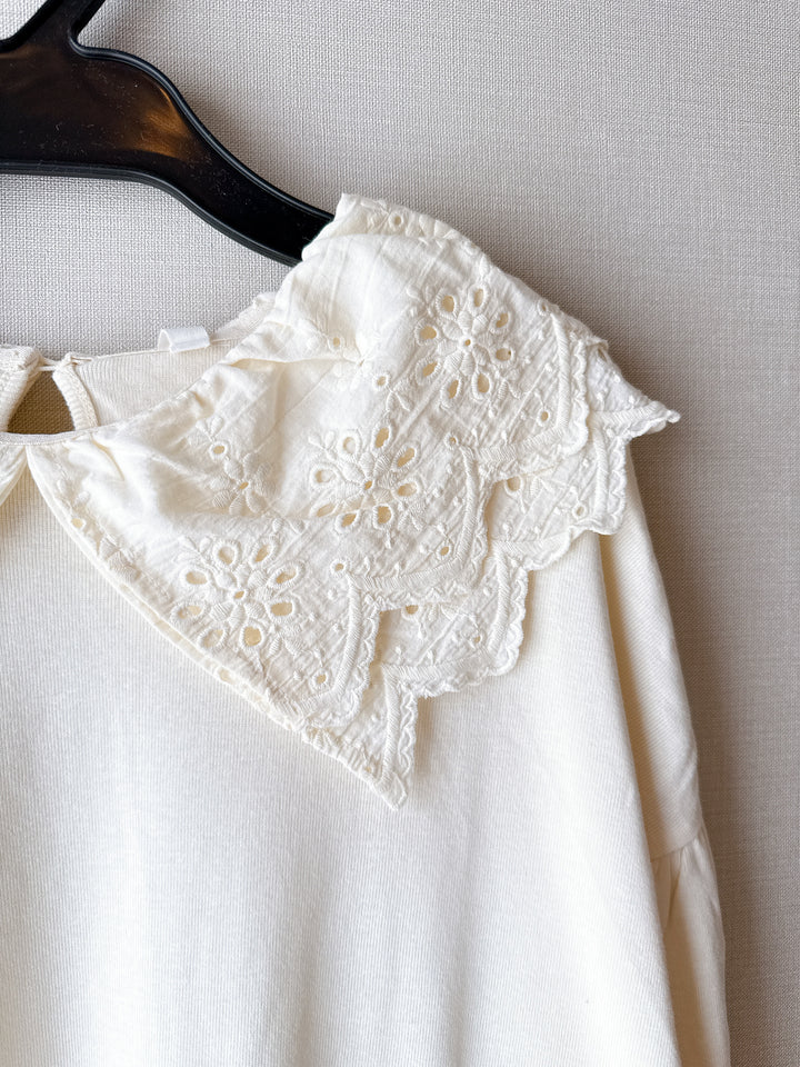 2509074 LUP French Rib Lace Tee - White