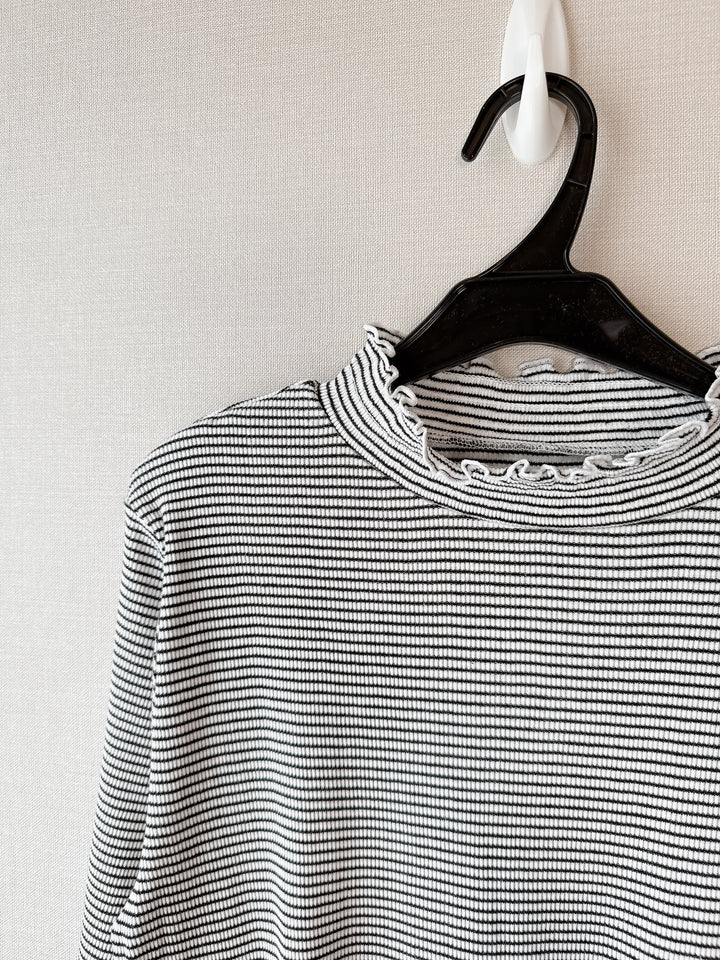 2509091 MMO Ruffle Neck Rib Tee - Border