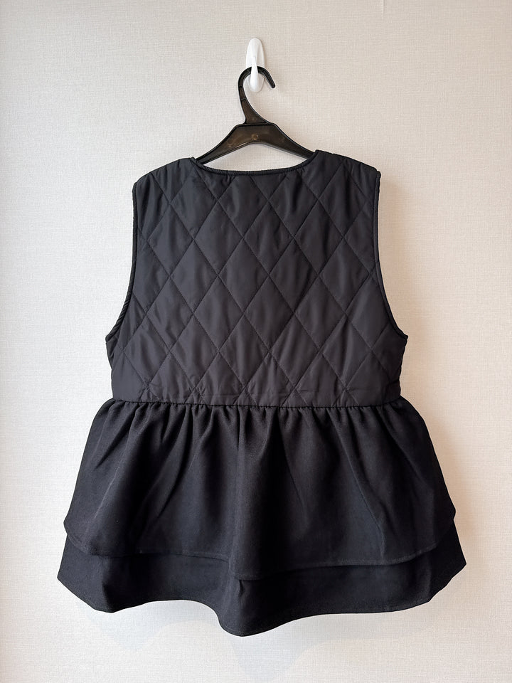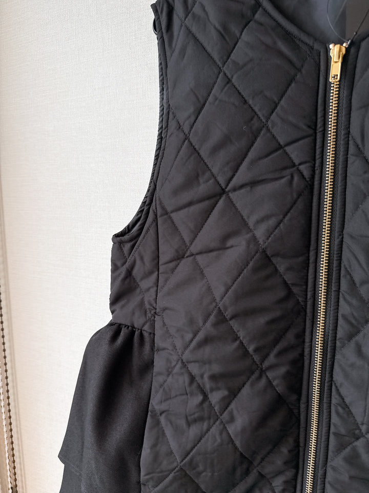 2509150 OU Rhombus Quilted Zip Vest - Black