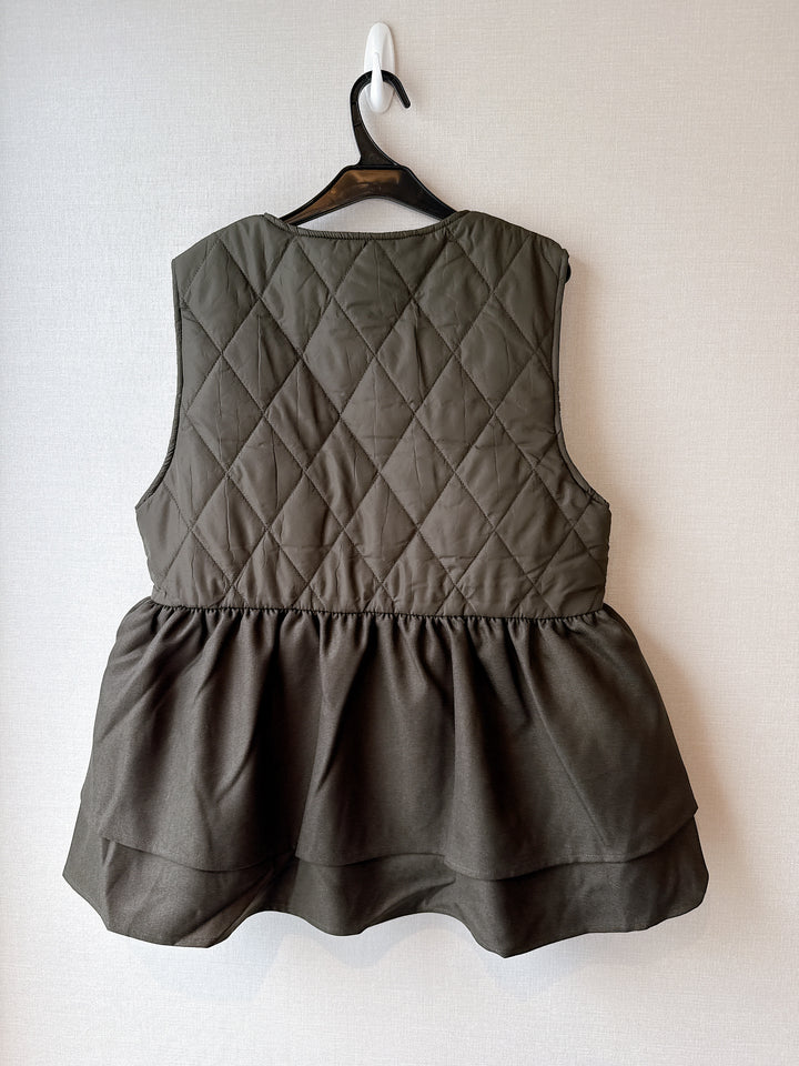 2509150 OU Rhombus Quilted Zip Vest - Green