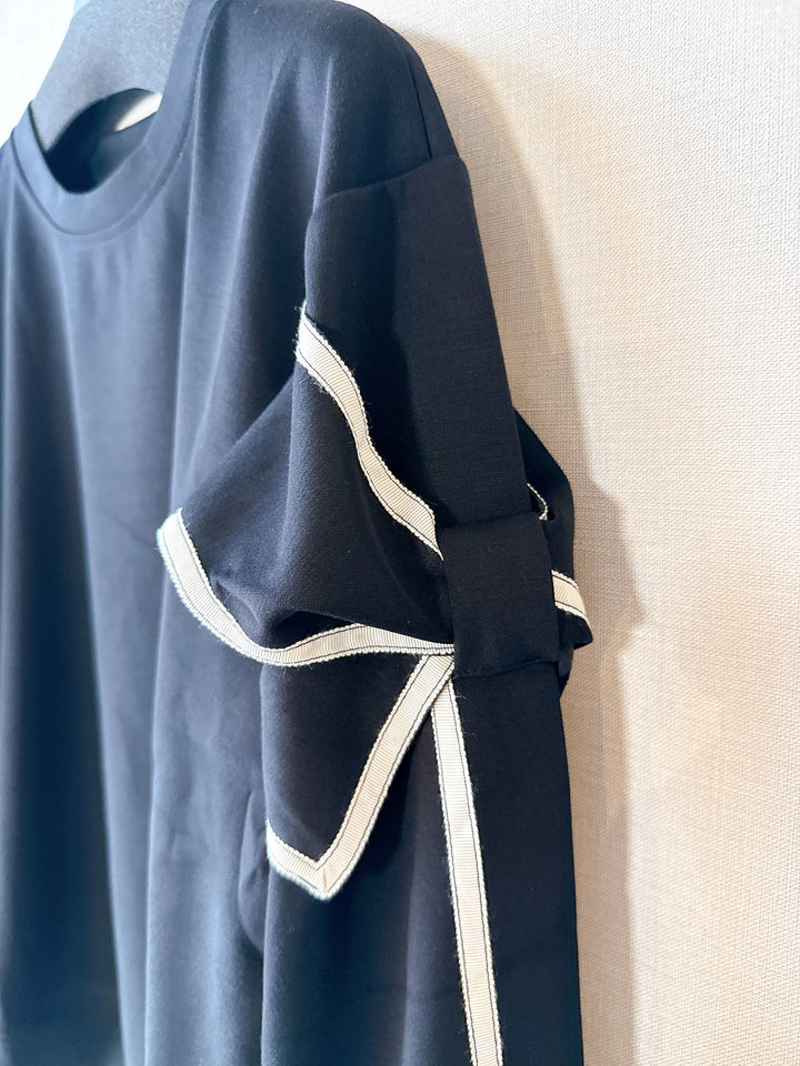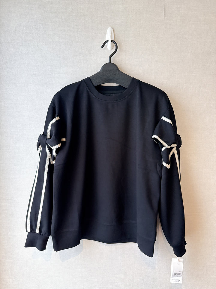 2509202 BC Line Stitch Ribbon Sleeves Pullover - Black