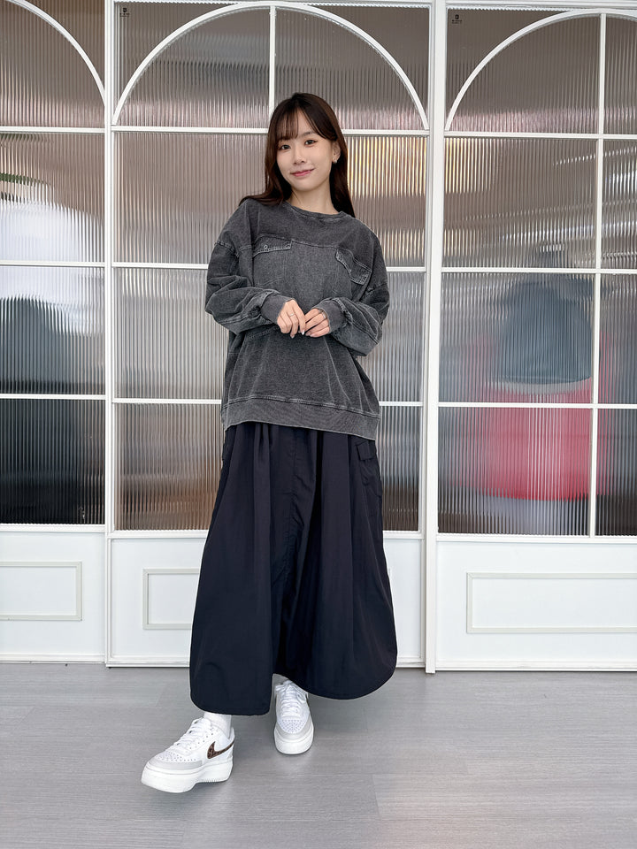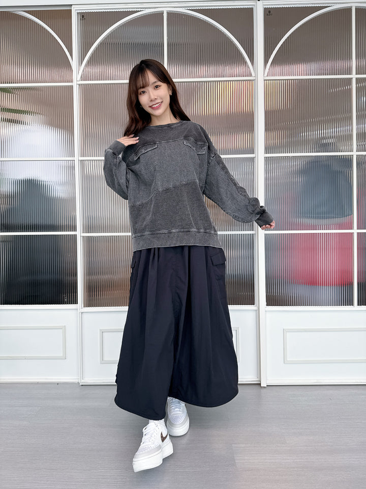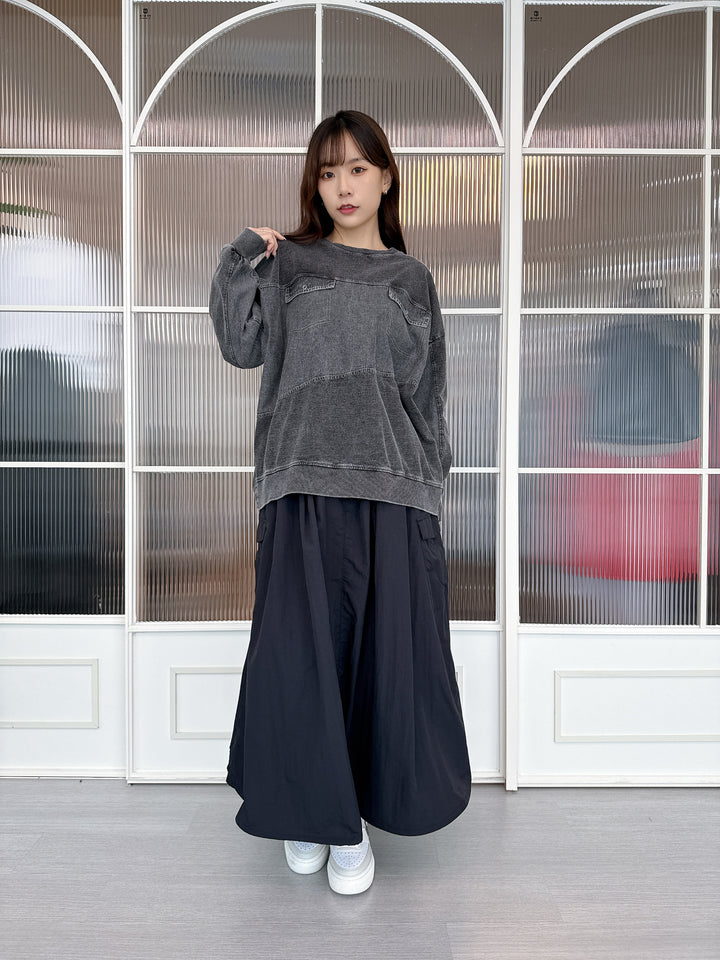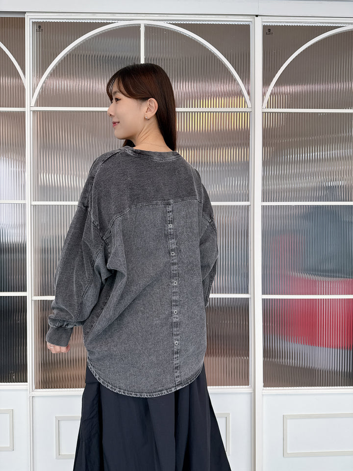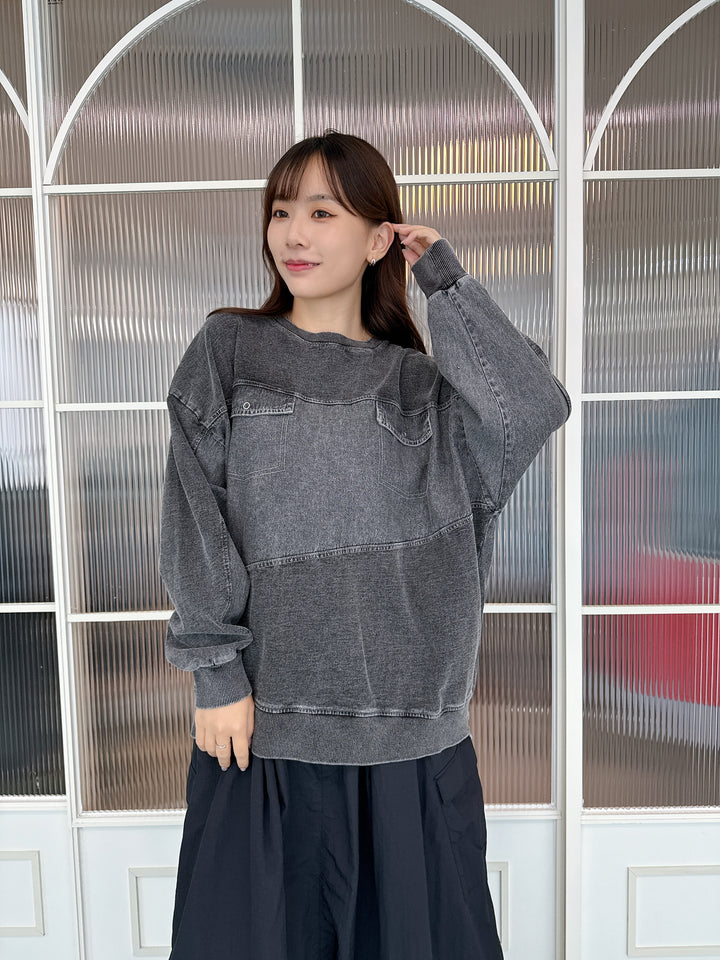 2510006 LUP Fake Pockets Denim Pullover - Black