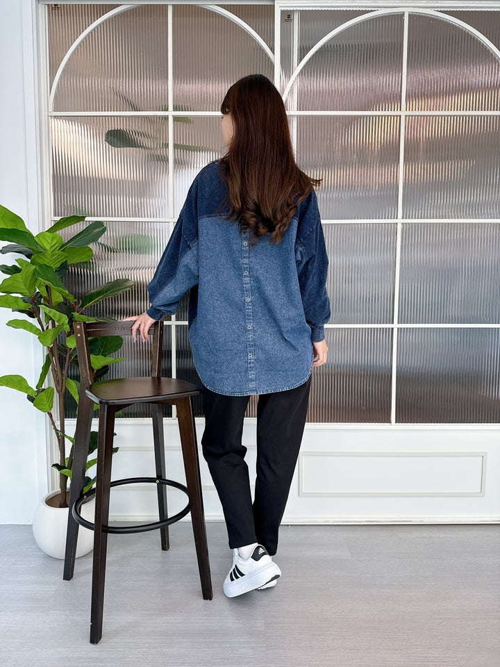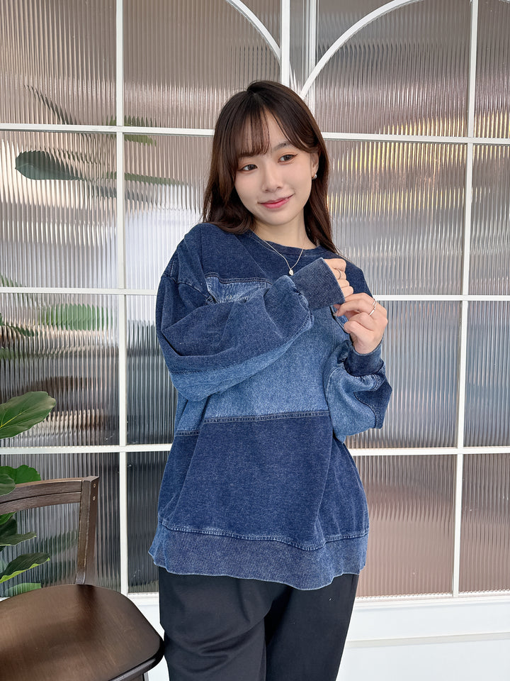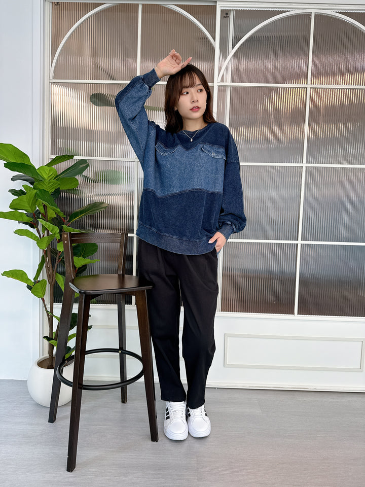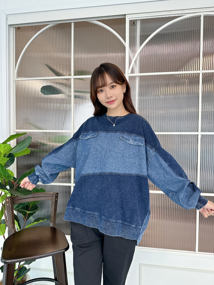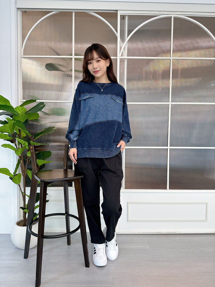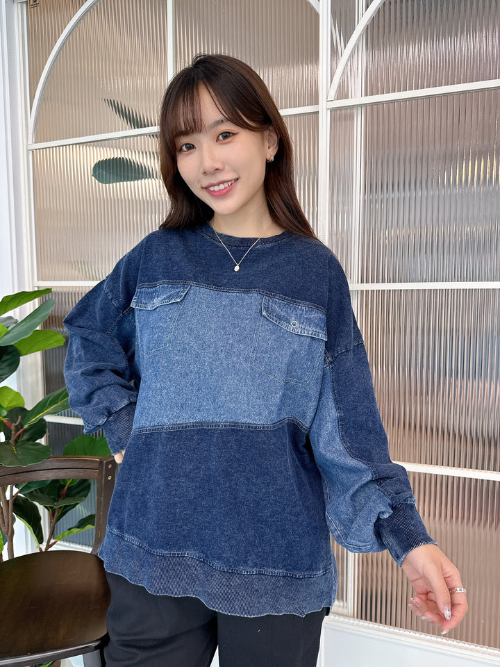 2510006 LUP Fake Pockets Denim Pullover - Navy