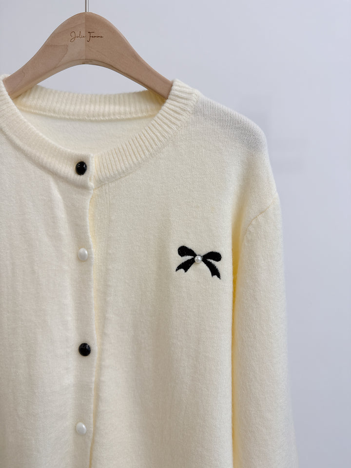 2510020 CR Ribbon EMB Knit Cardigan - Ivory