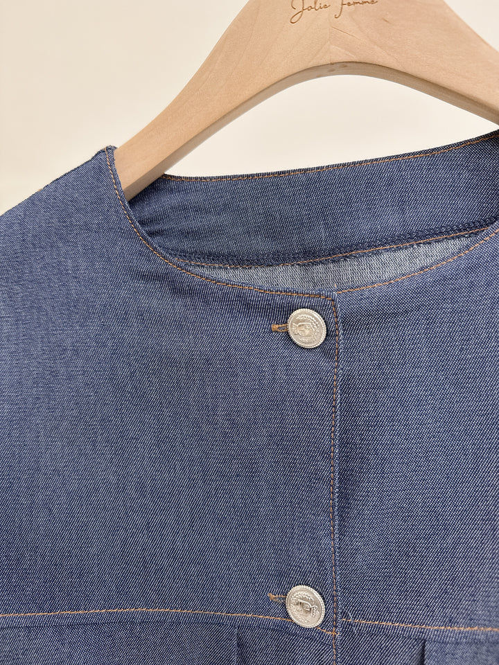 2510026 CR Volume Sleeves Denim Jacket - Navy