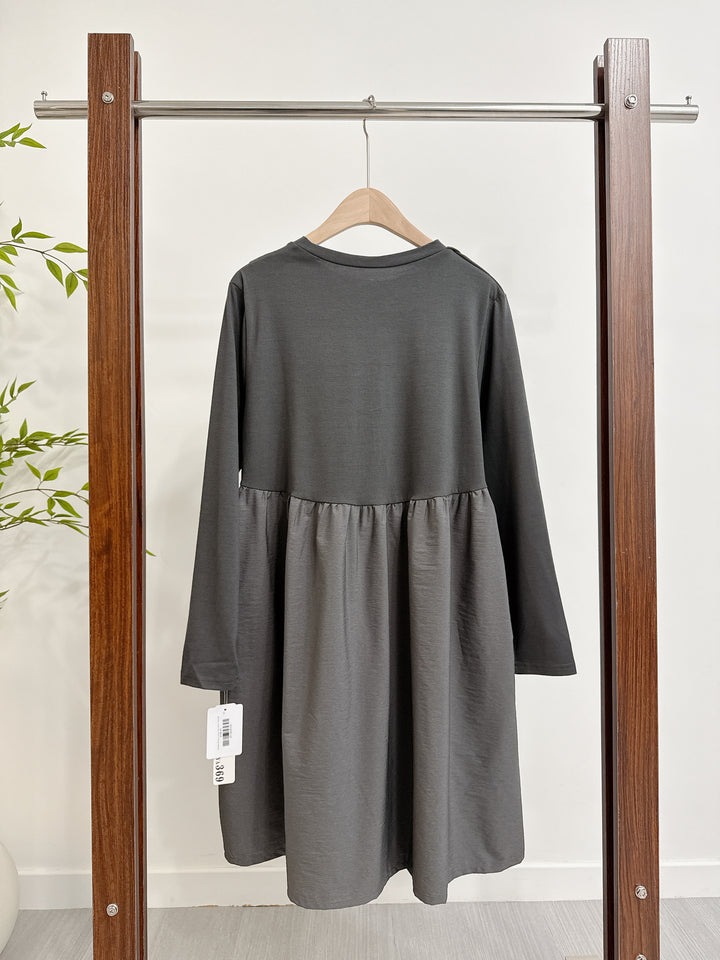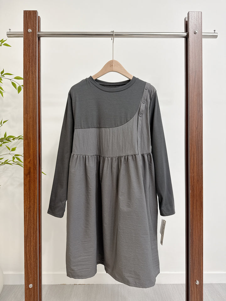2510028 CR Switch Design Tunic Dress - Charcoal