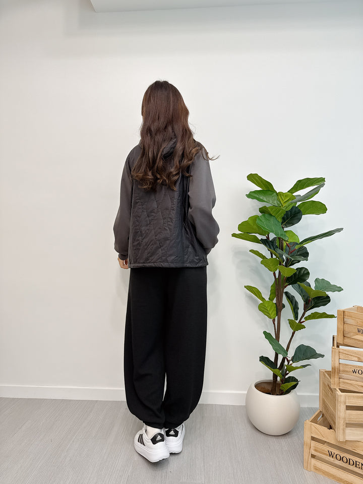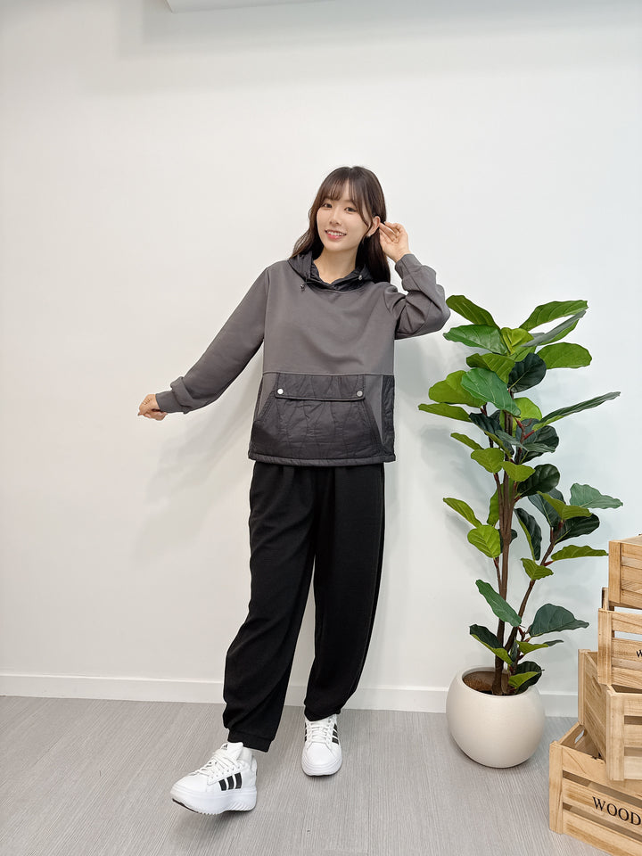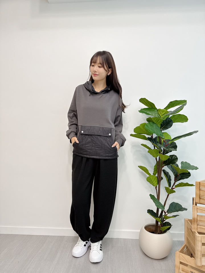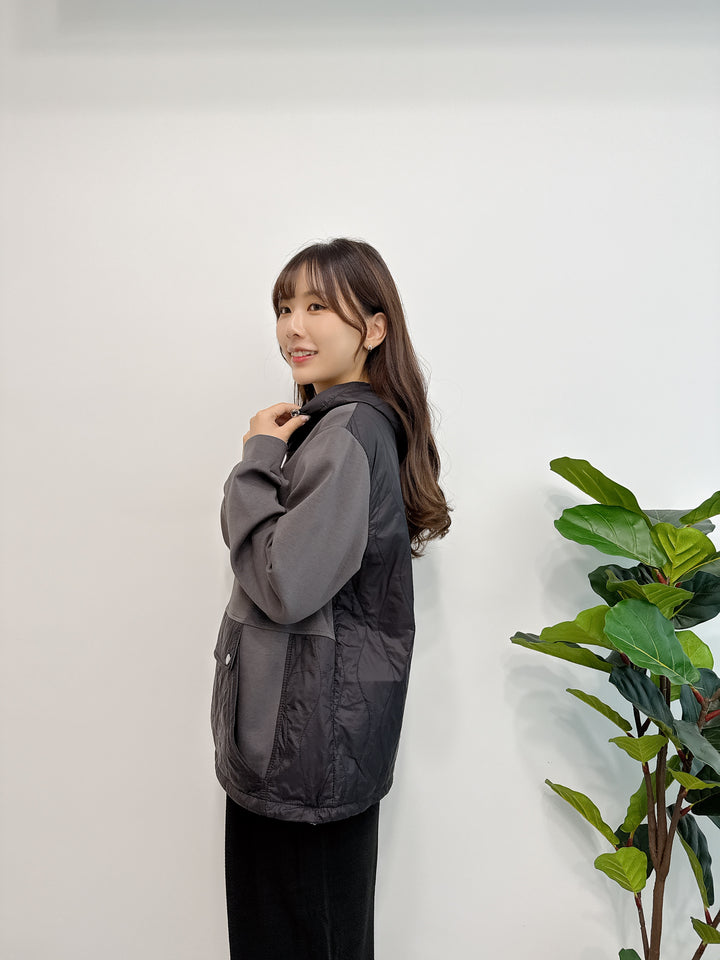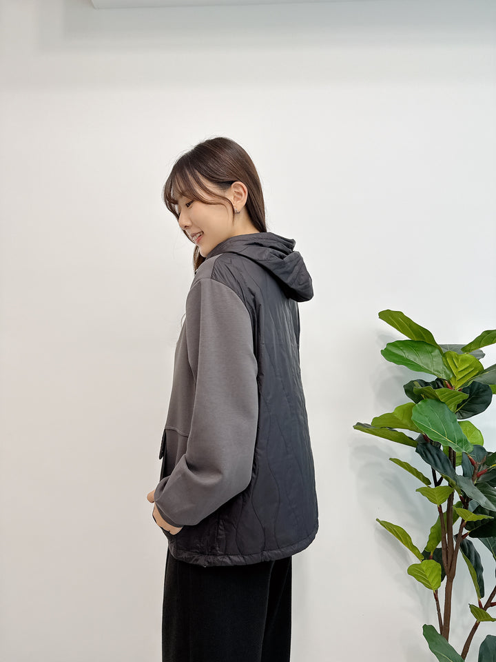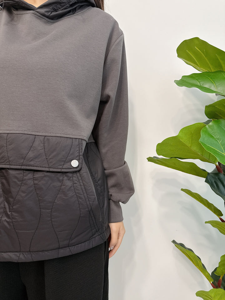 2510035 TU Mixed Material Quilted Hoodie - Charcoal
