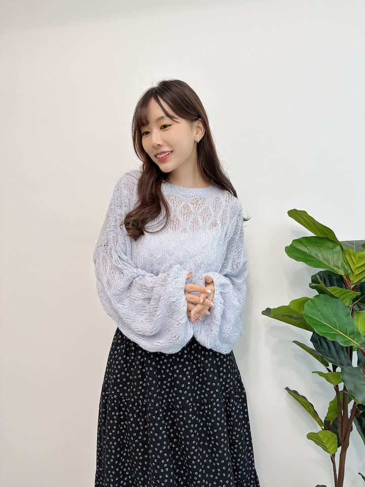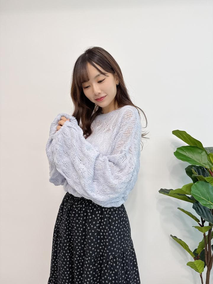 2510040 GL Fluffy Sheer Knit Pullover - Blue