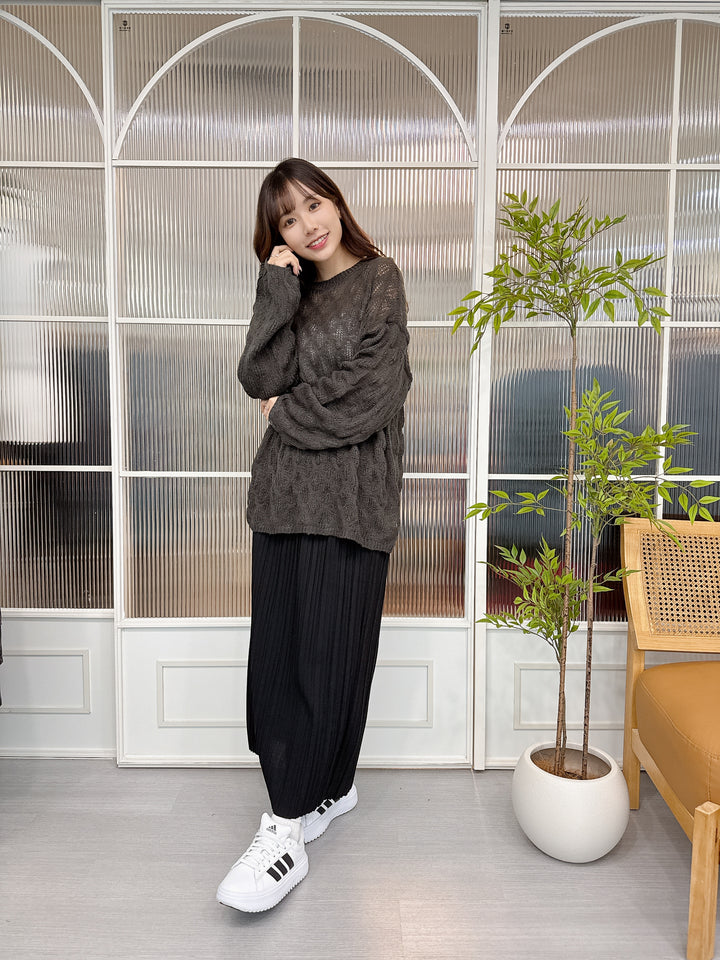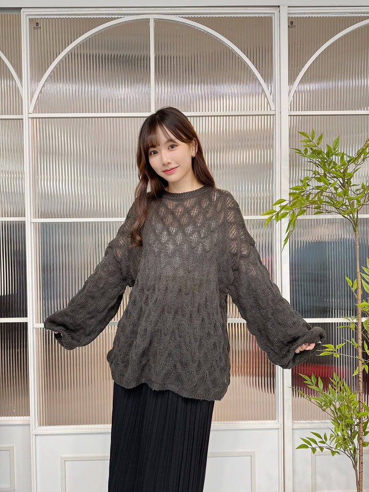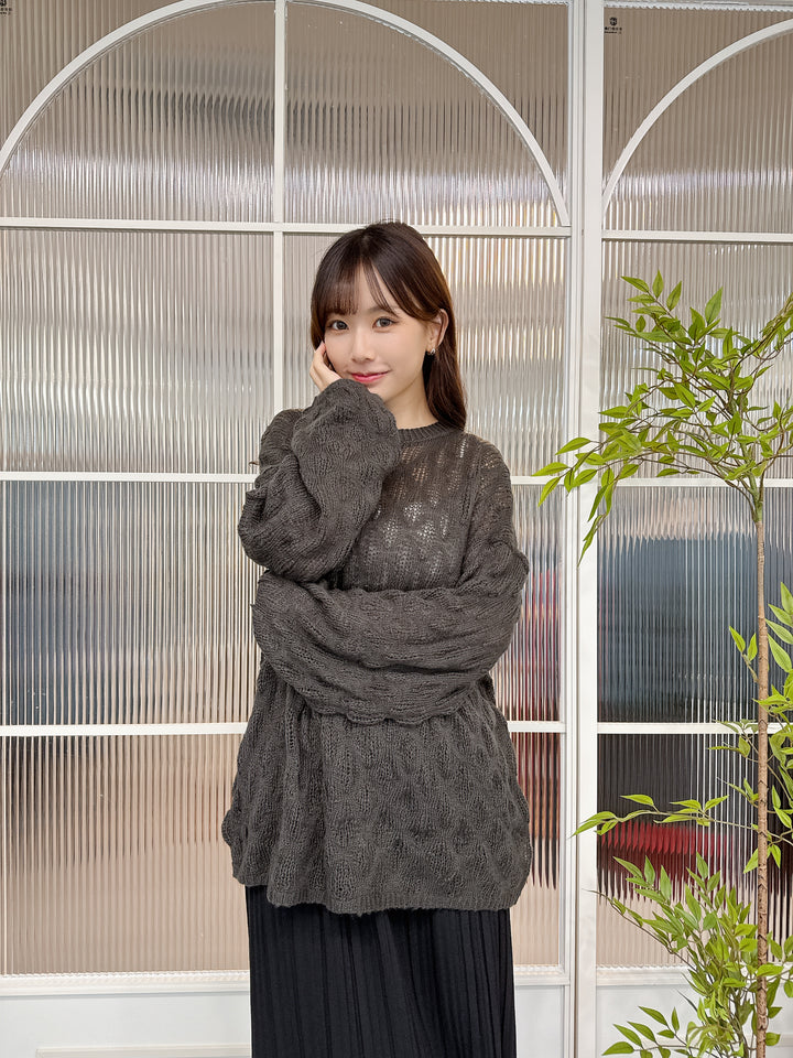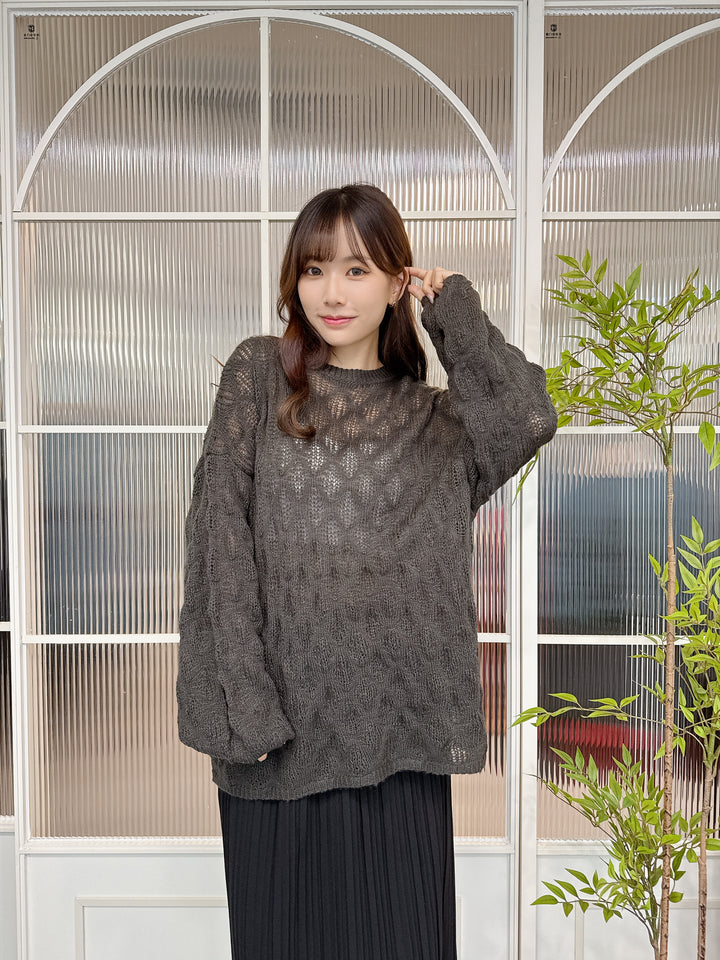 2510040 GL Fluffy Sheer Knit Pullover - Charcoal