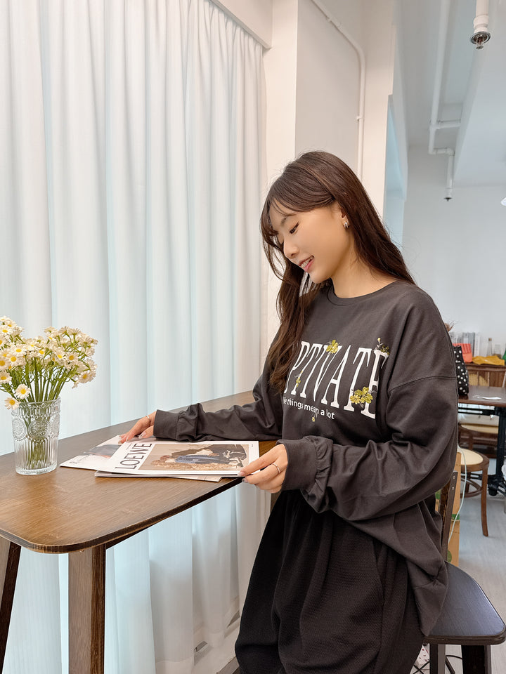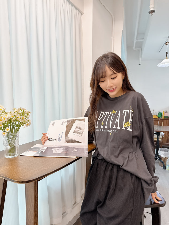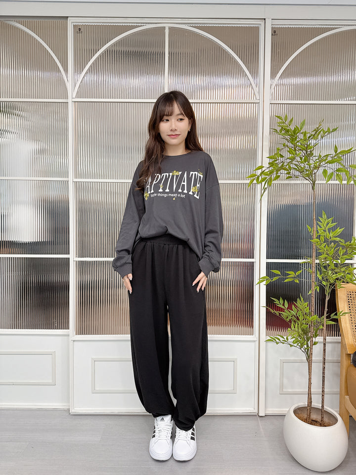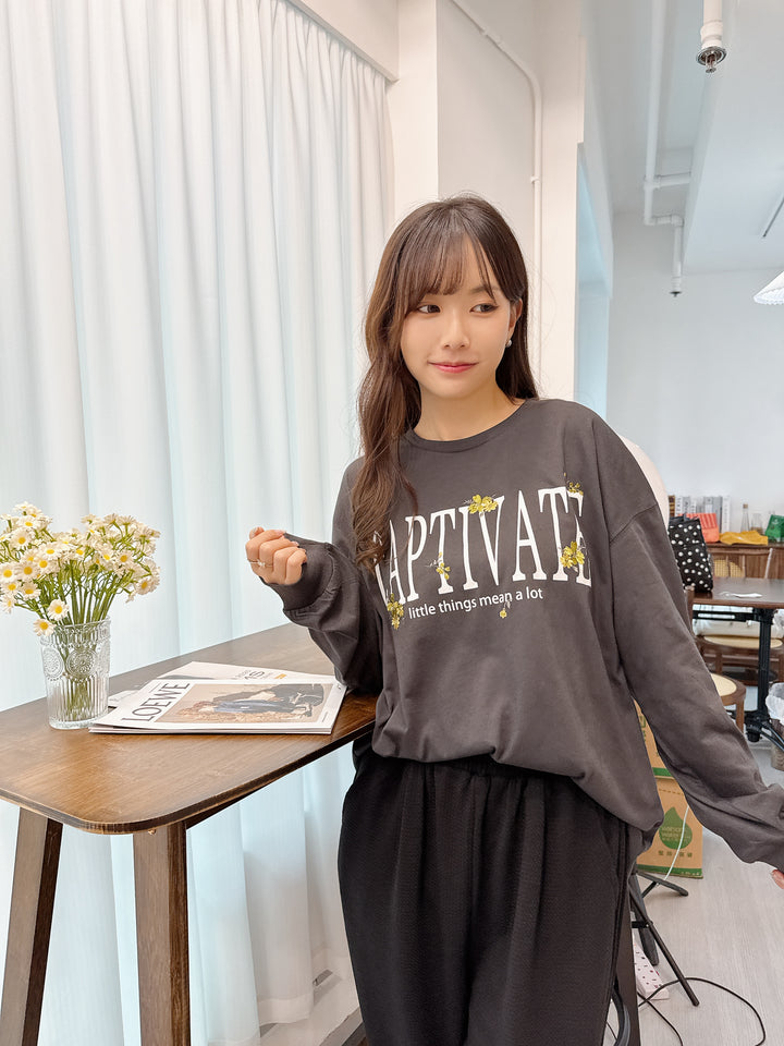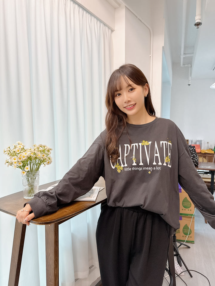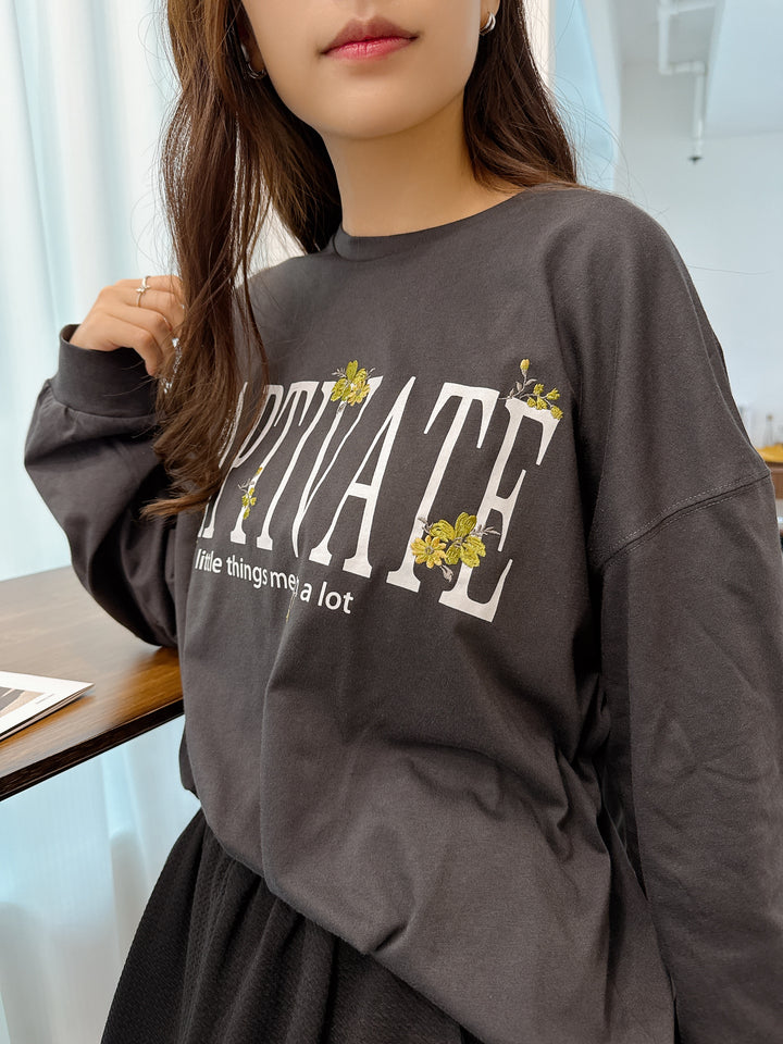 2510041 GL Logo Print & Floral Embroidery Top - Black