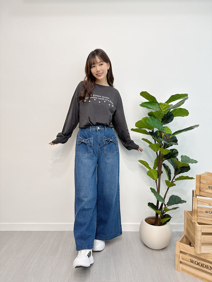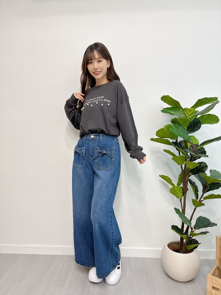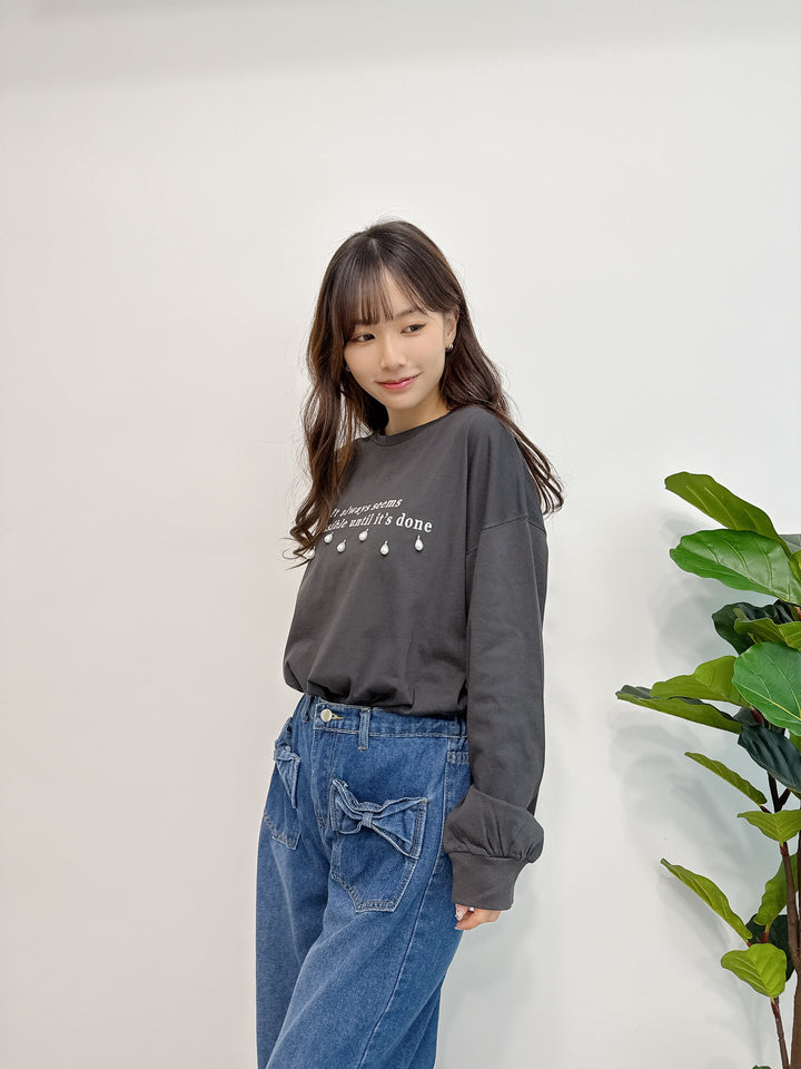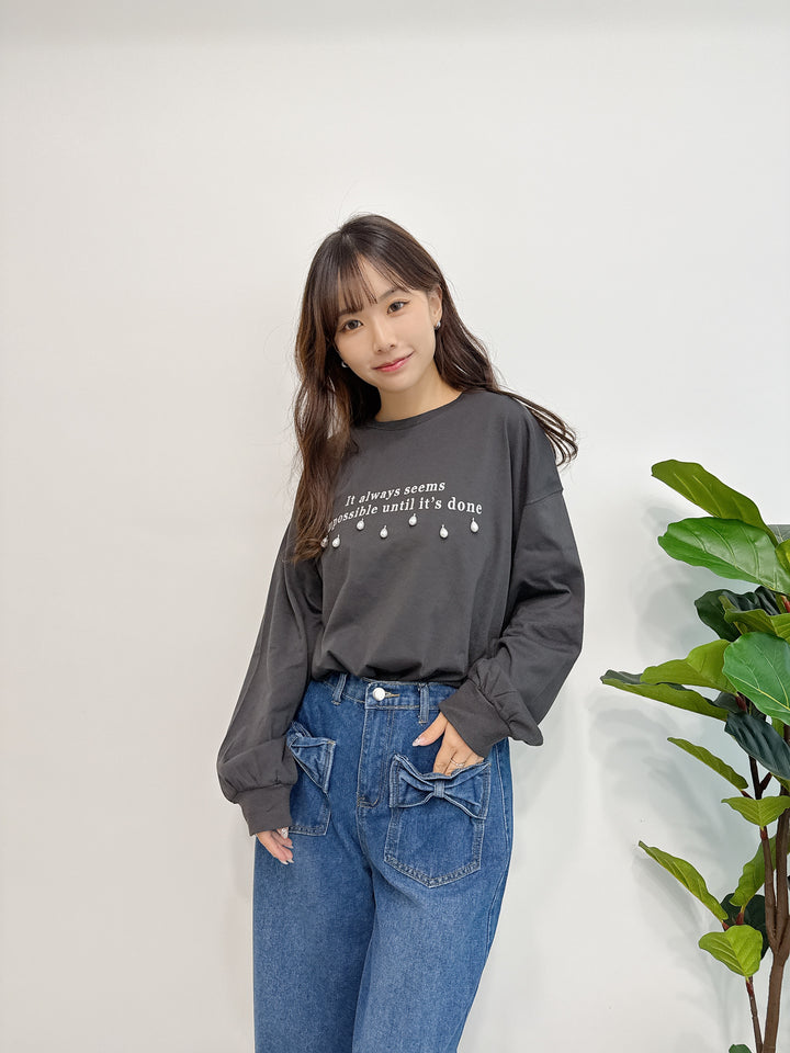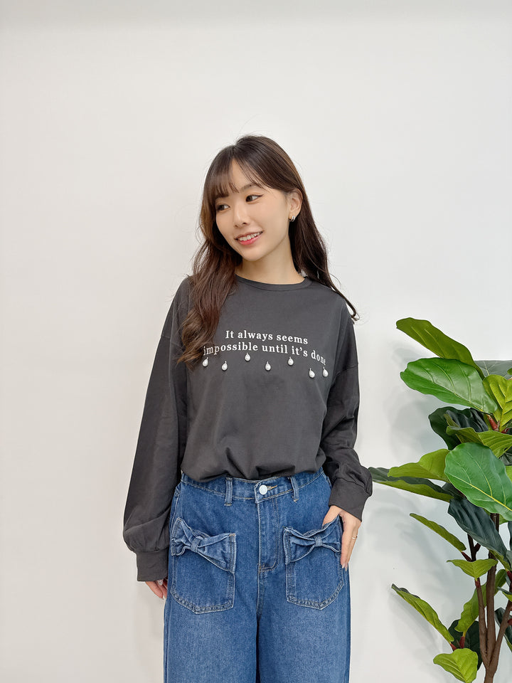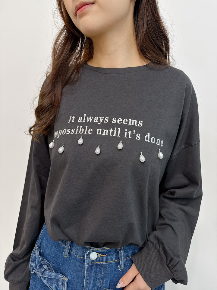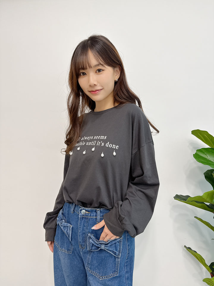 2510043 GL Pearl Drops and Logo Embroidery Top - Black