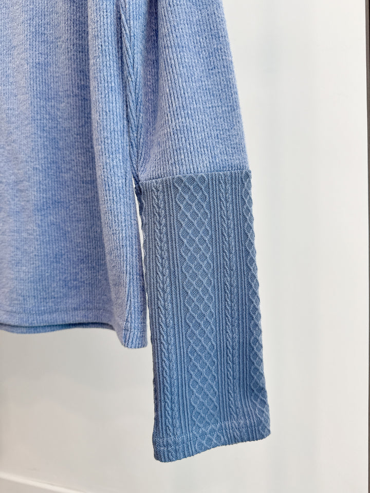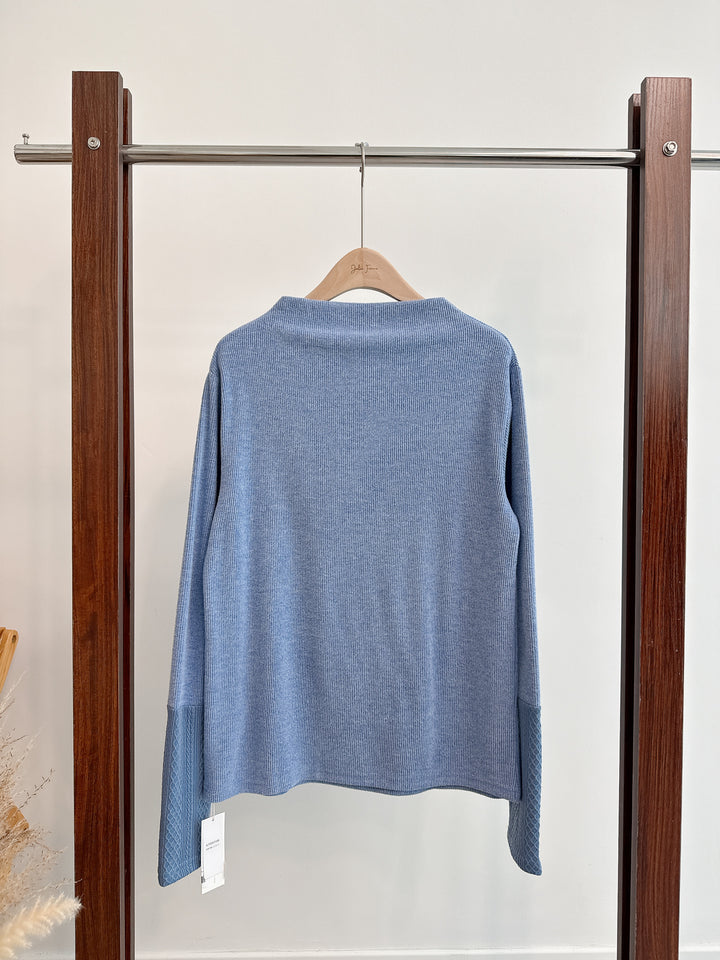 2510058 MMO Rib x Jacquard Bottle Neck Top - Blue