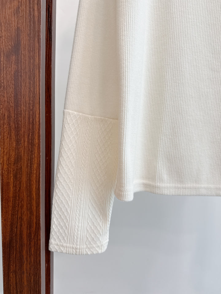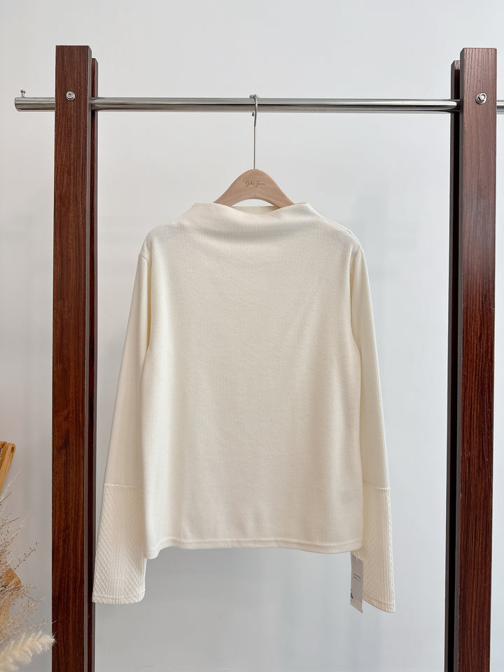 2510058 MMO Rib x Jacquard Bottle Neck Top - Ivory
