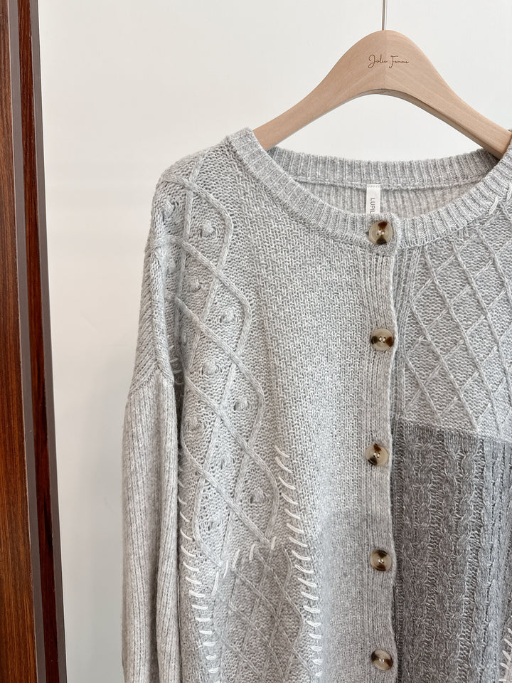 2510079 LUP Multi Pattern Knit Cardigan - Grey