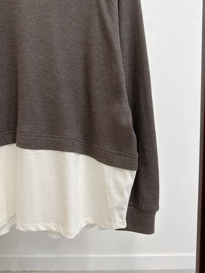 2510086 LA Waffle Hem Switching Top - Charcoal