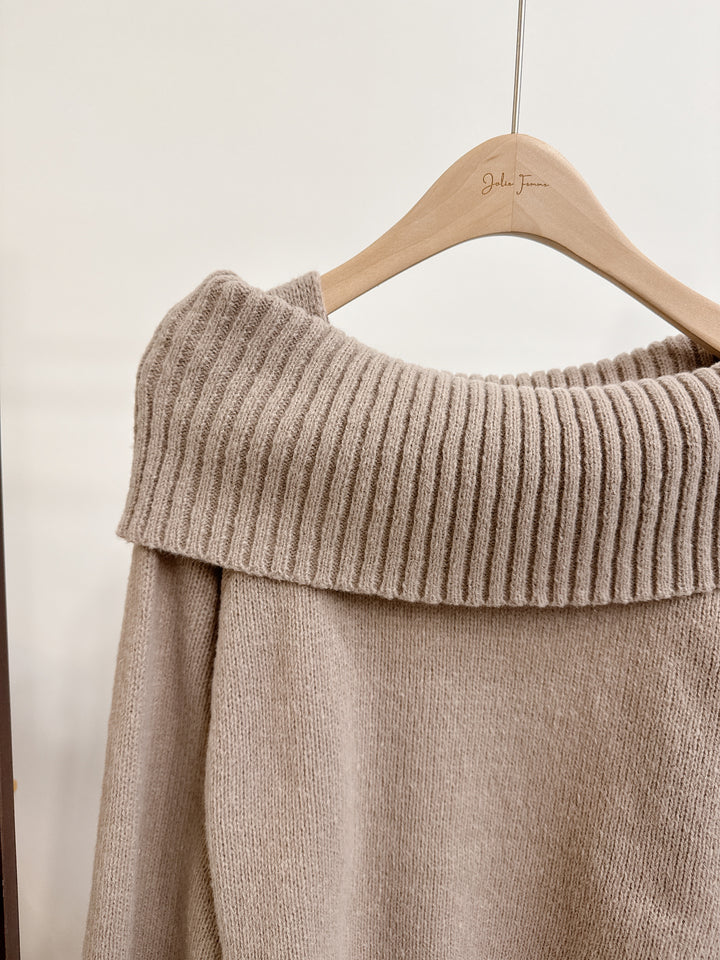 2510090 RO Mohair Touch Off Shoulder Knit Top - Mocha