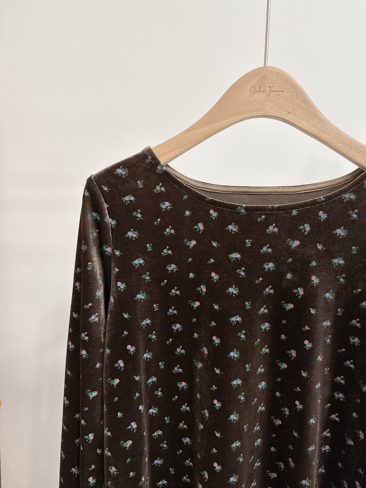 2510093 RO Flower Velvet Fingerless Top - Brown