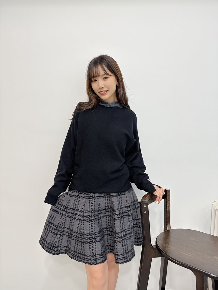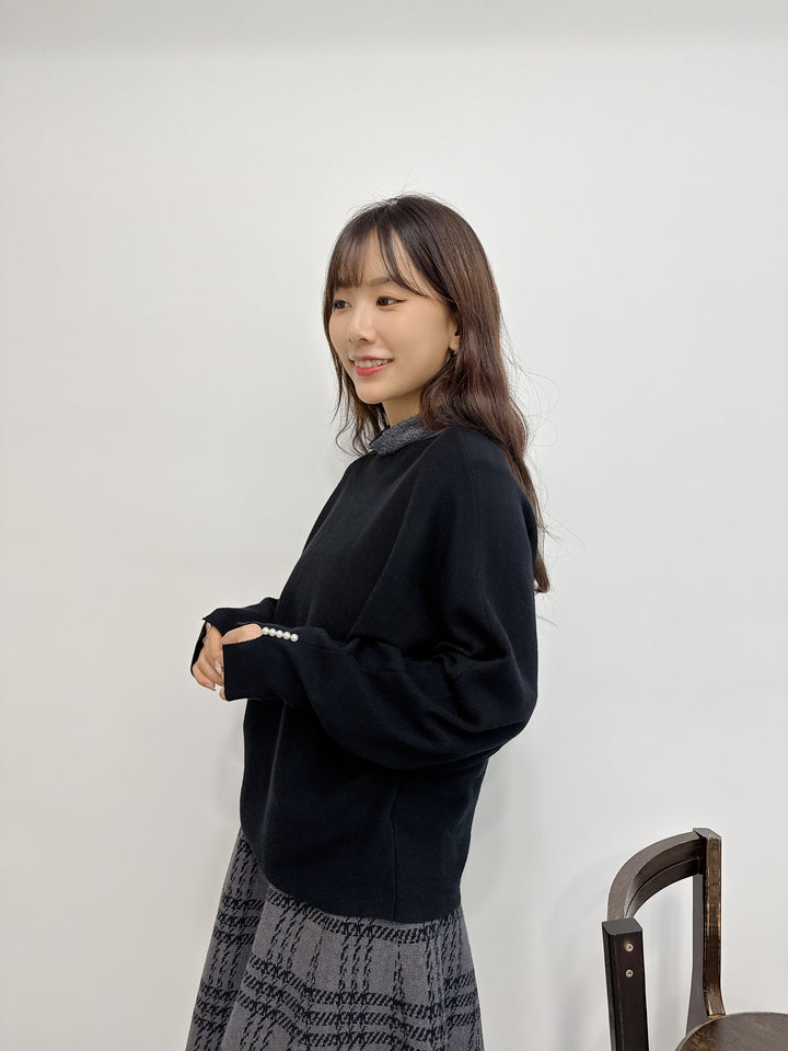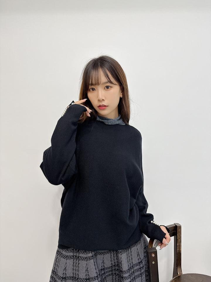 2511001 TU Pearl Slit Sleeve Knit Top - Black