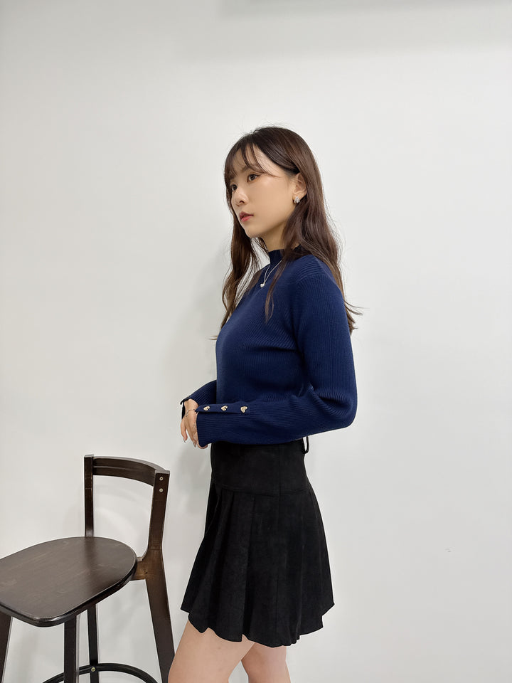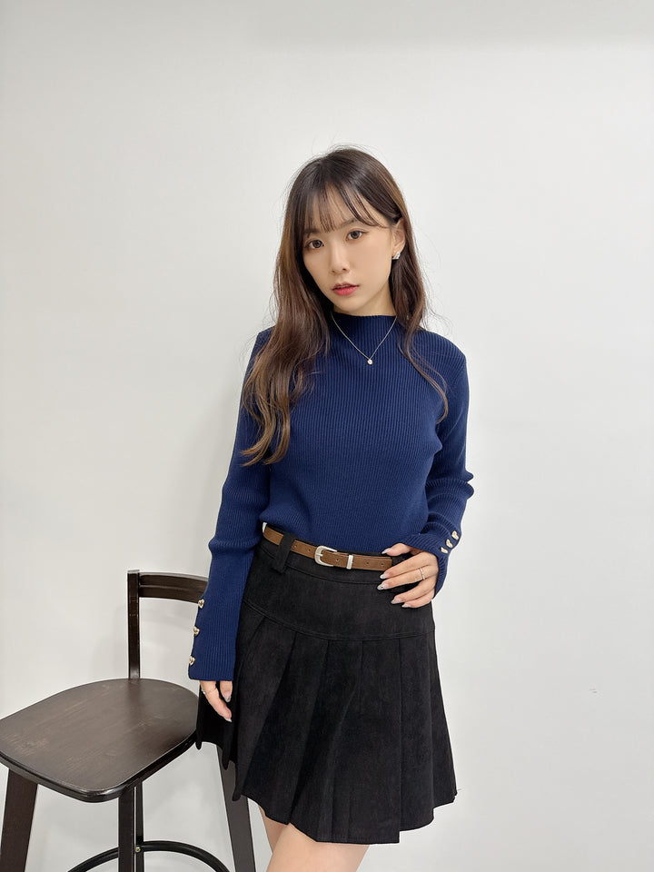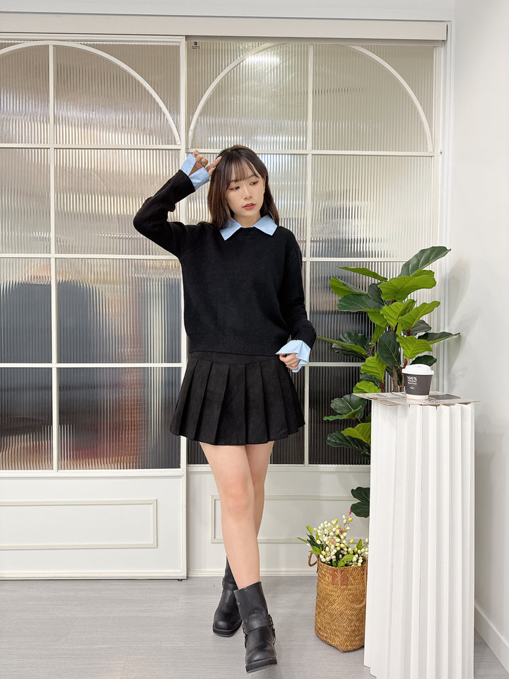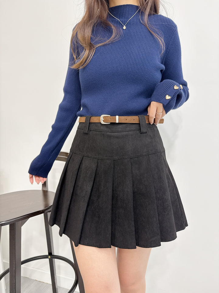 2511004 BE Belt Set Suede Pleated Skirt - Black