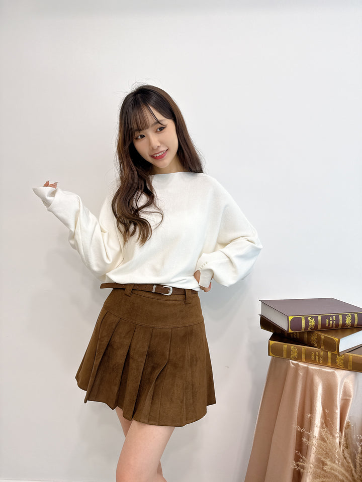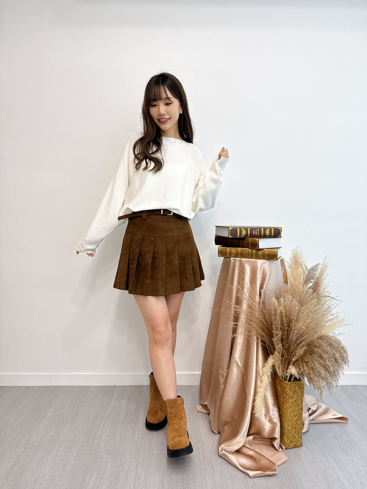 2511004 BE Belt Set Suede Pleated Skirt - Brown