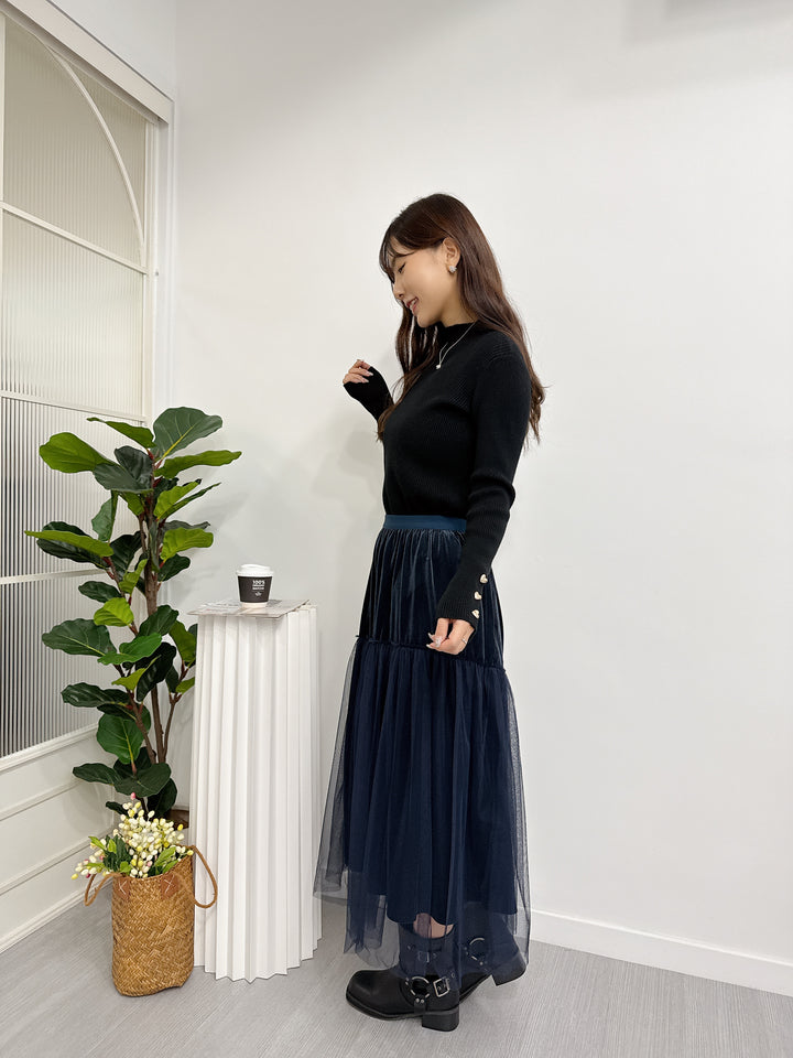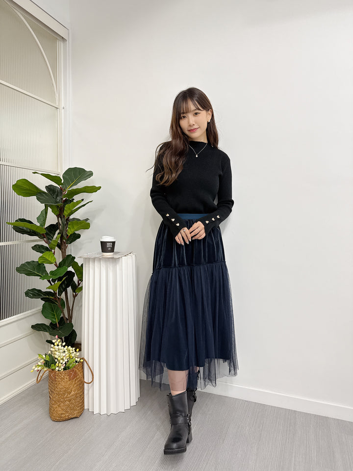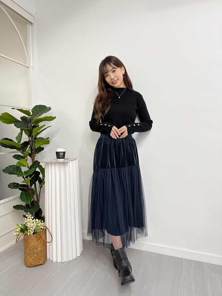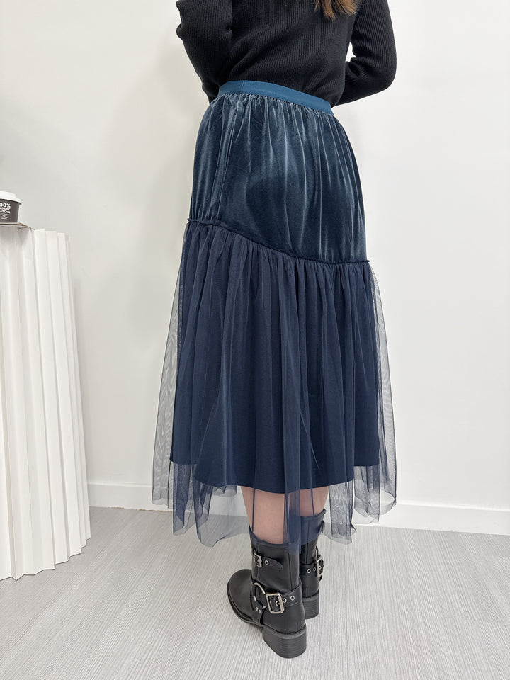 2511007 BE Tulle Velvet Tiered Skirt - Navy