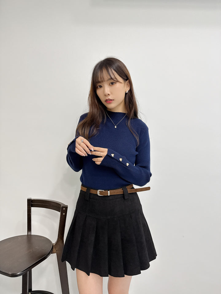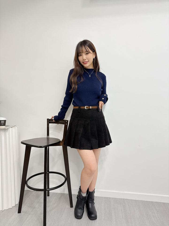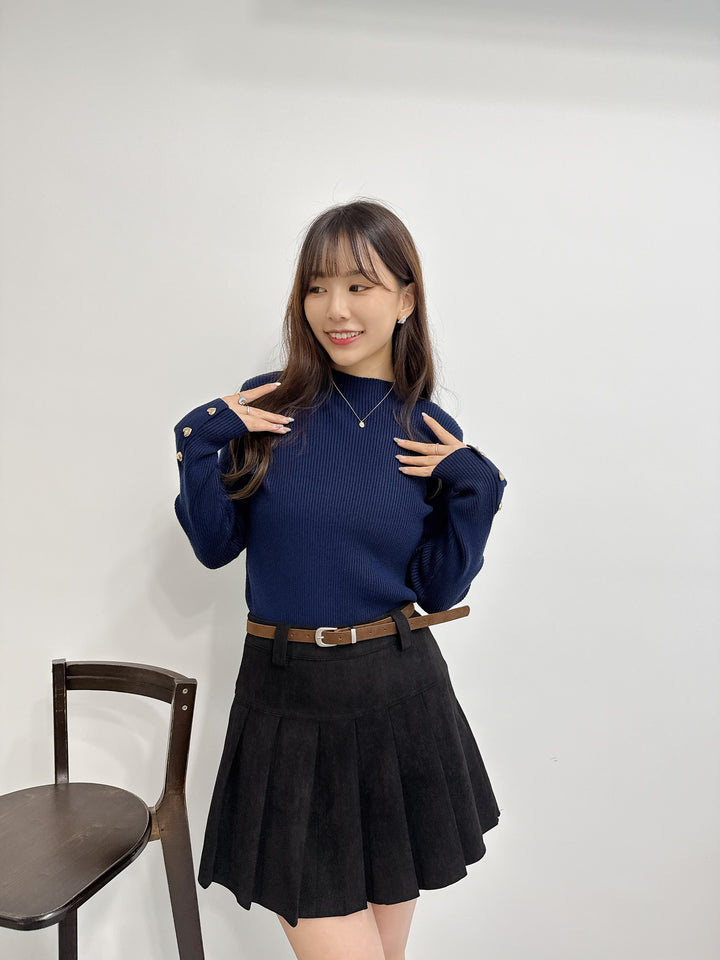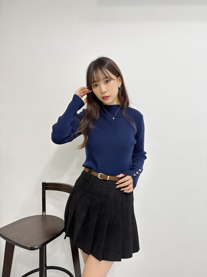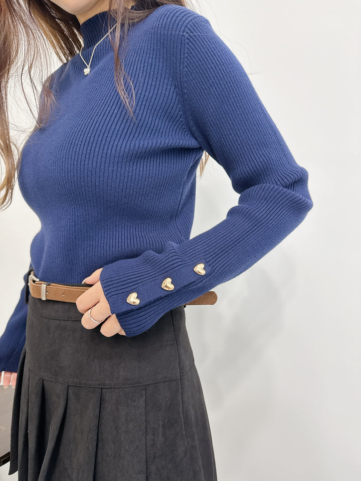 2511008 BE Heart Button Knit Top - Navy