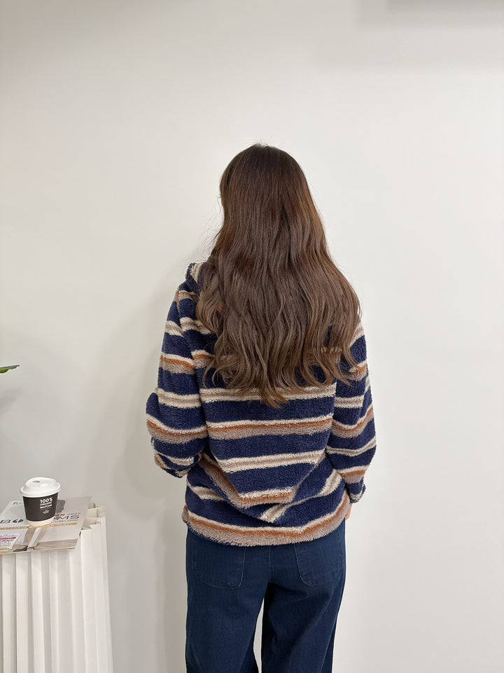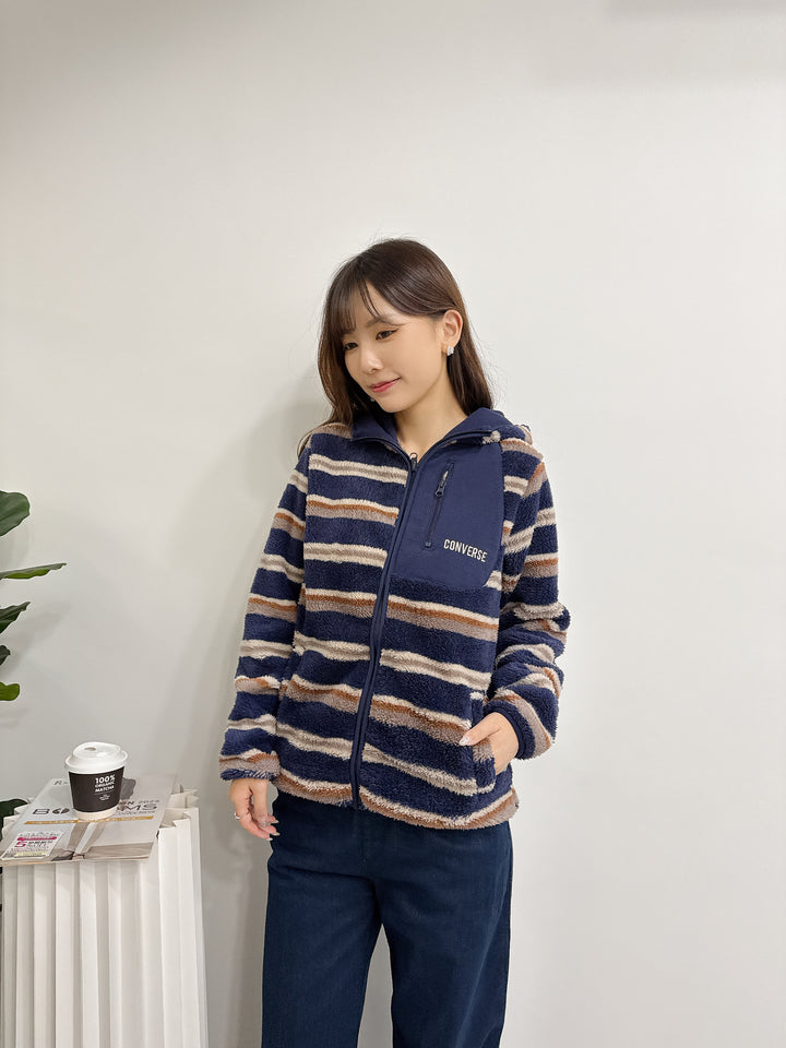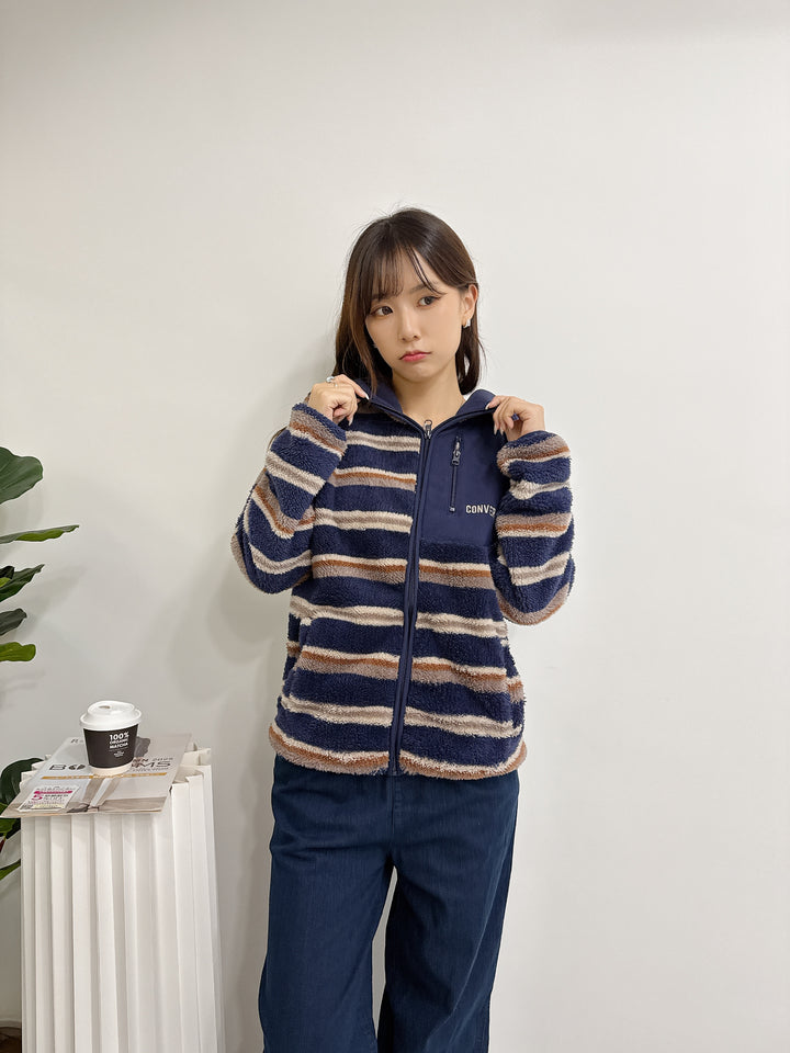 2511022 CONS Color Striped Fleece Jacket - Navy