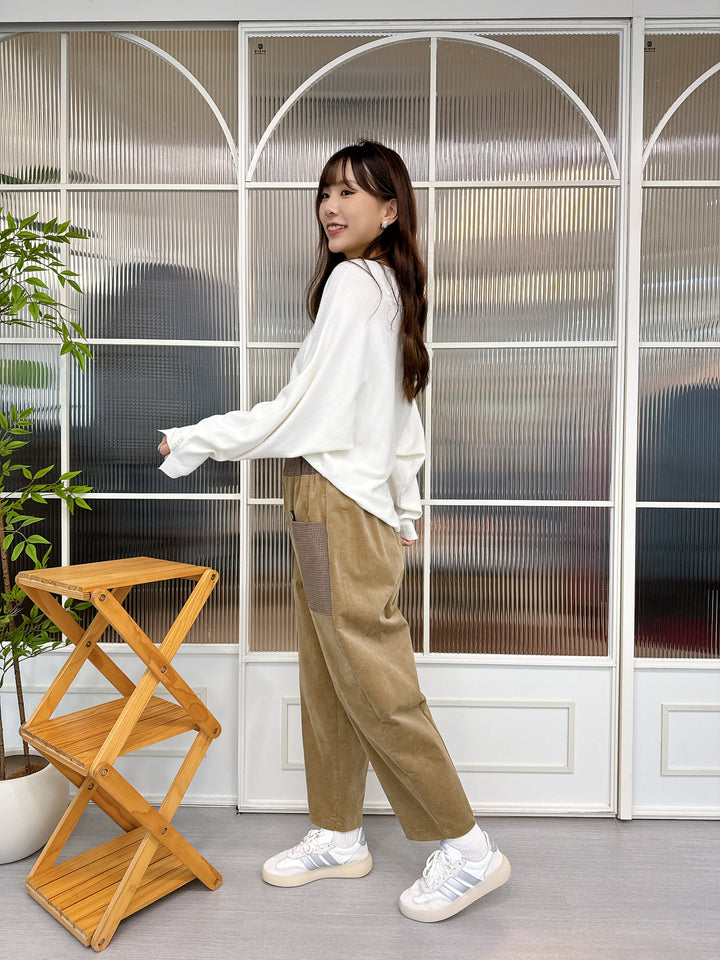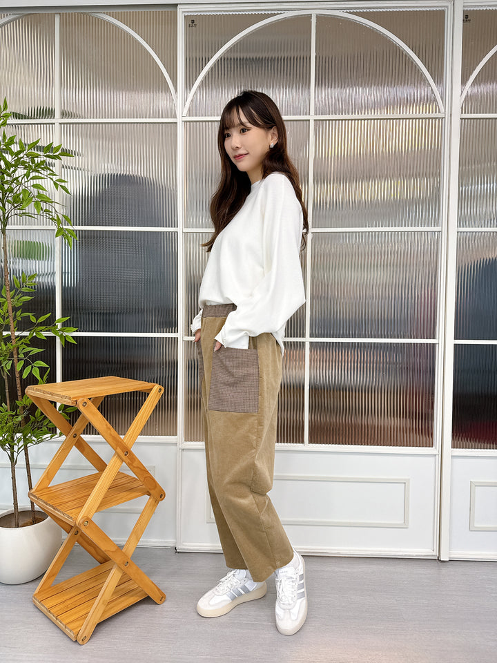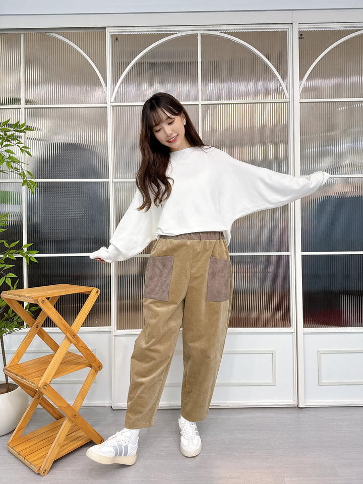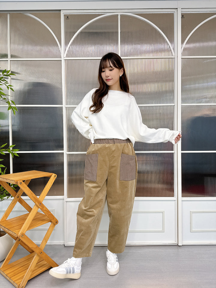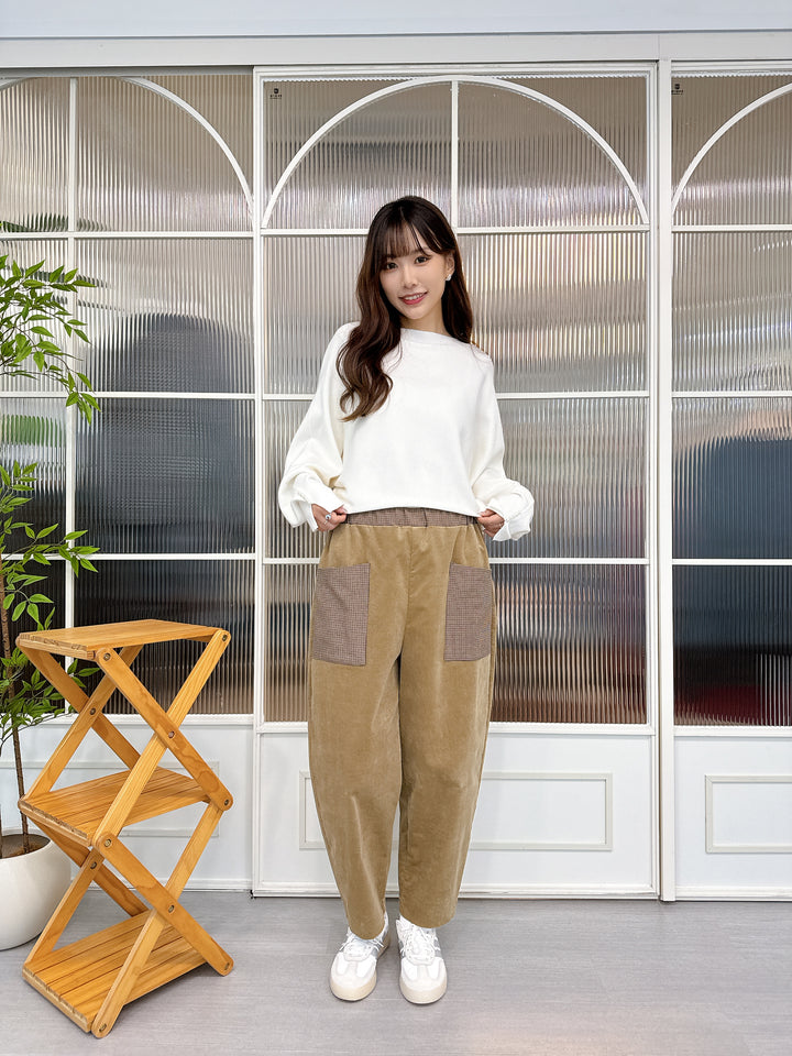 2511026 RS Checkered Pocket Corduroy Pants - Beige