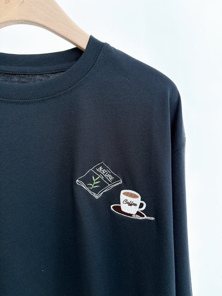 2511049 JT Cafe Motif Embroidered Top - Charcoal